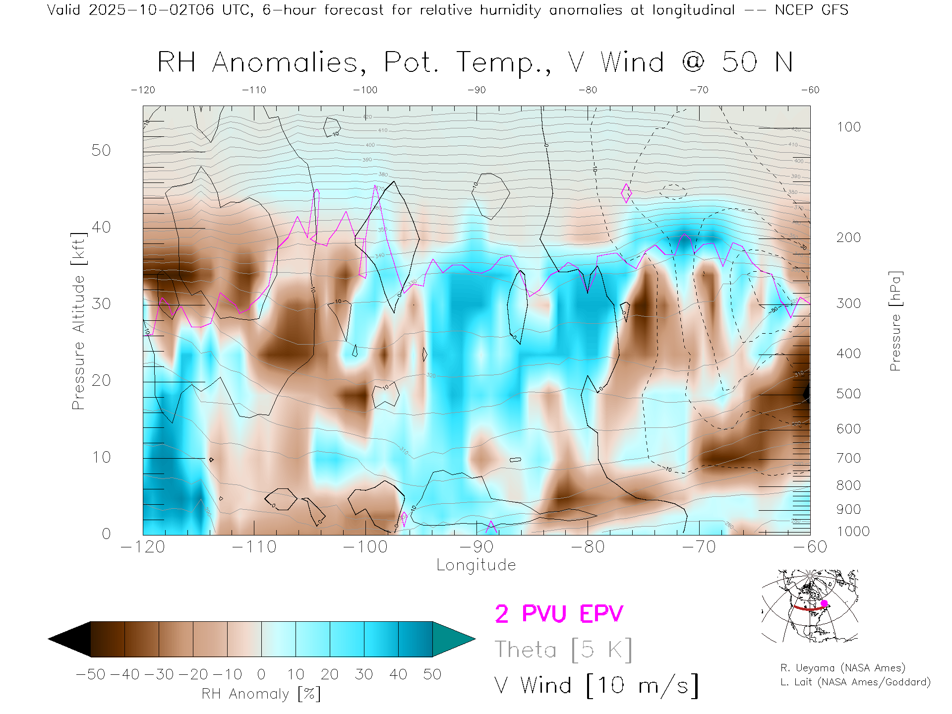 NCEP GFS Forecast Rel. Hum. X-Section (50 N)