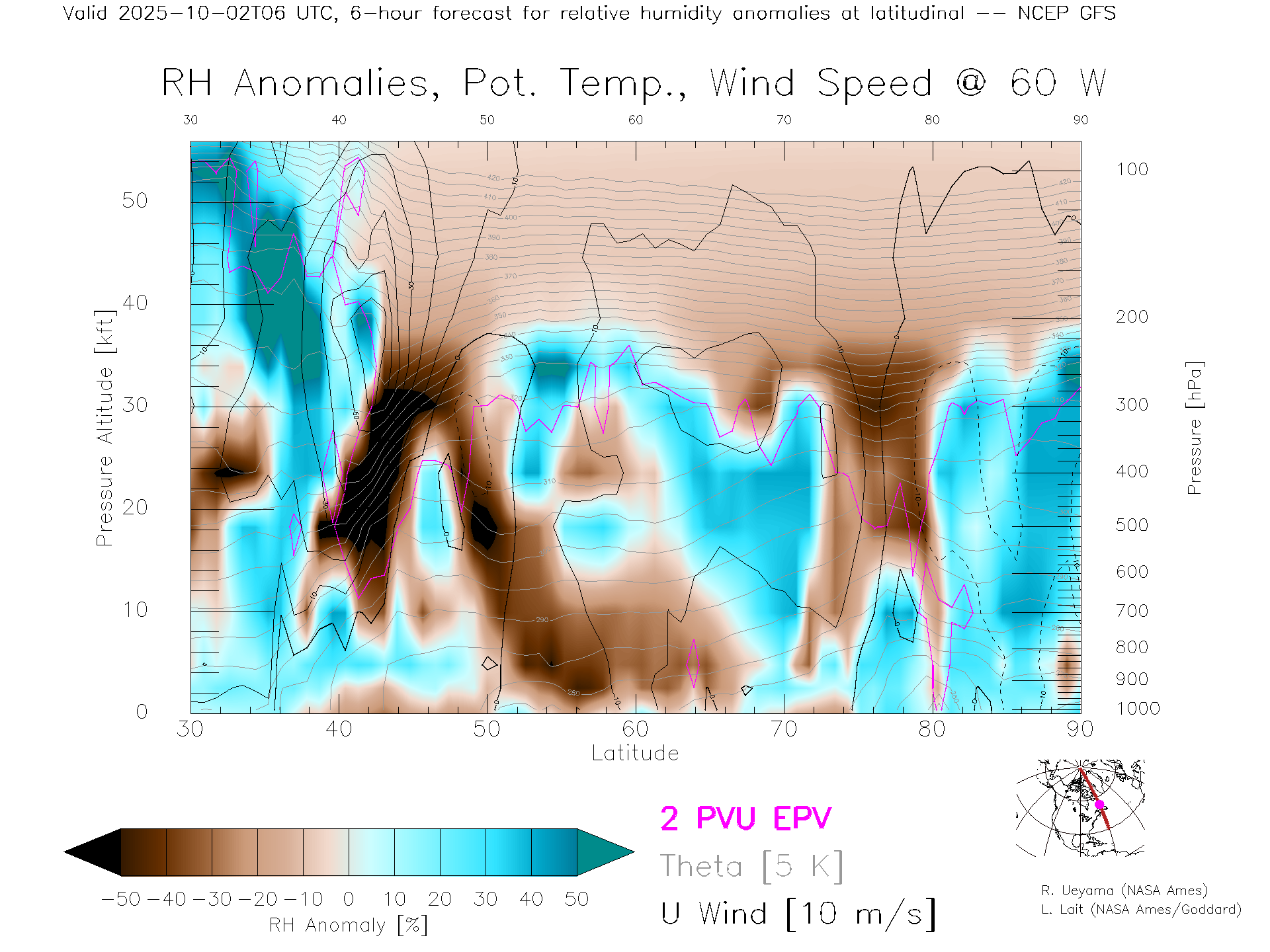 NCEP GFS Forecast Rel. Hum. X-Section (60 W)