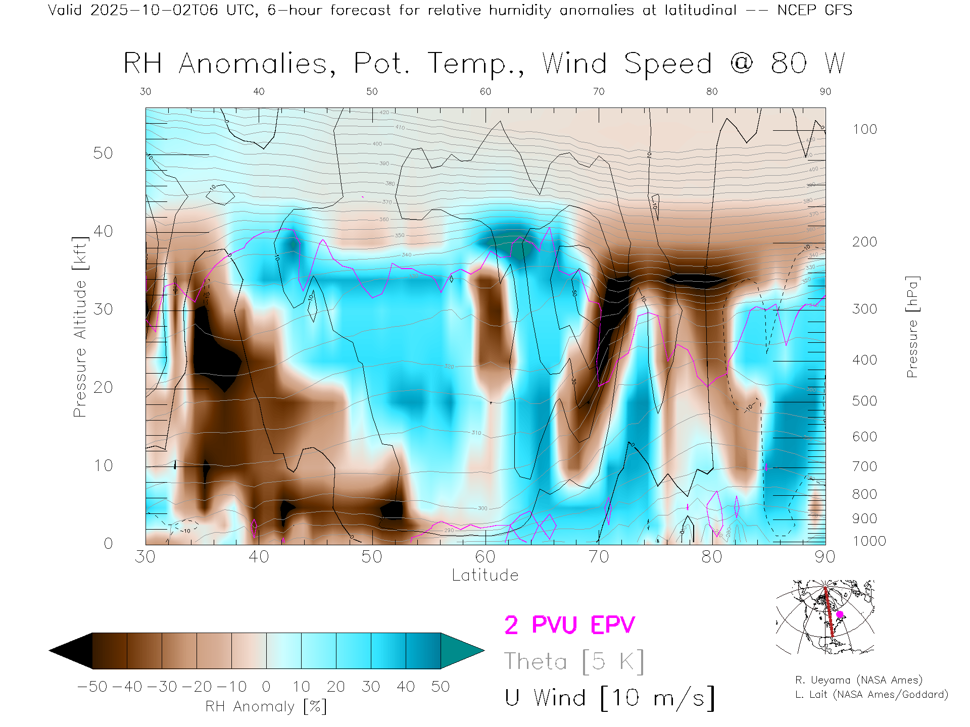 NCEP GFS Forecast Rel. Hum. X-Section (80 W)