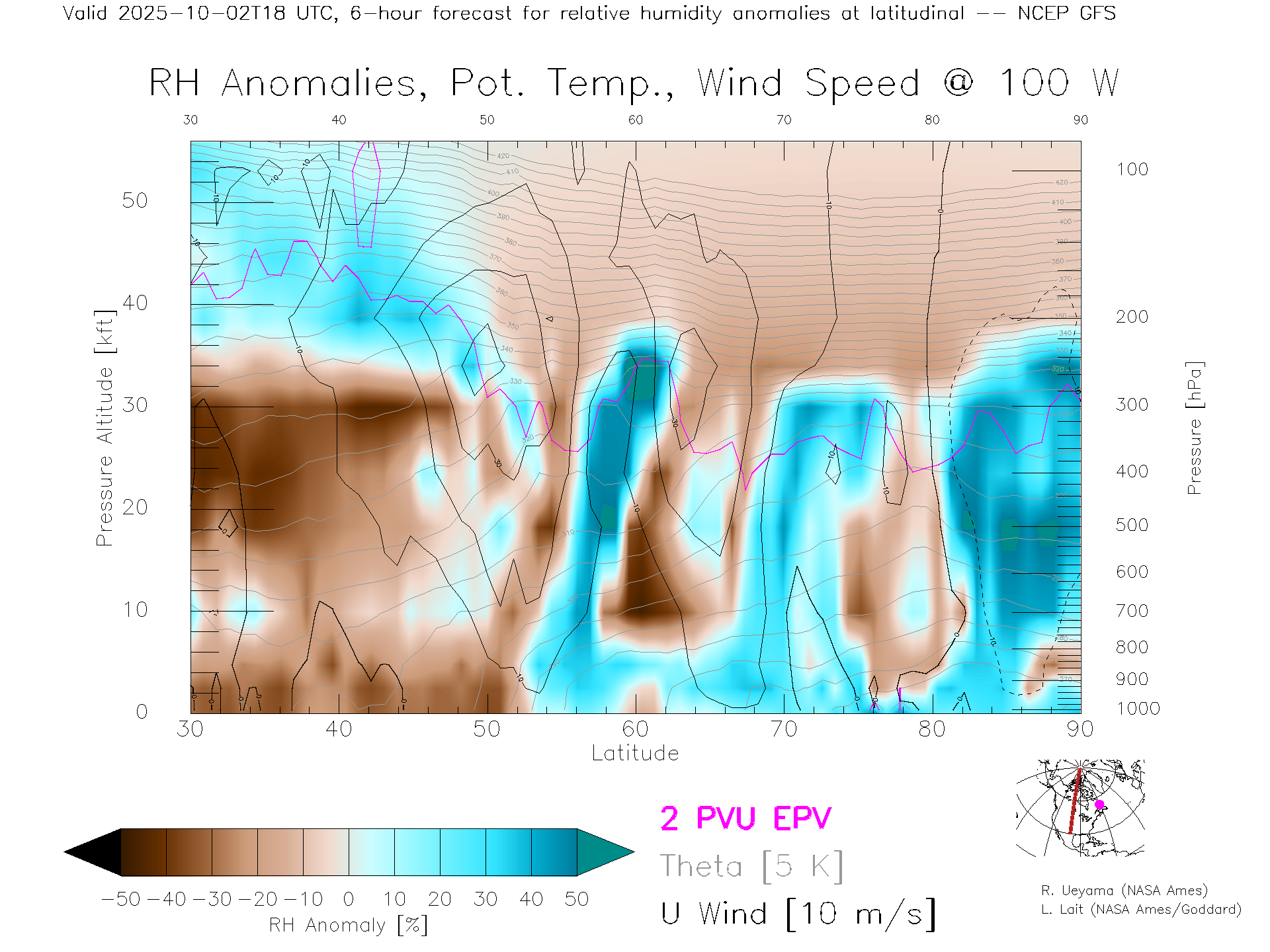 NCEP GFS Forecast Rel. Hum. X-Section (100 W)