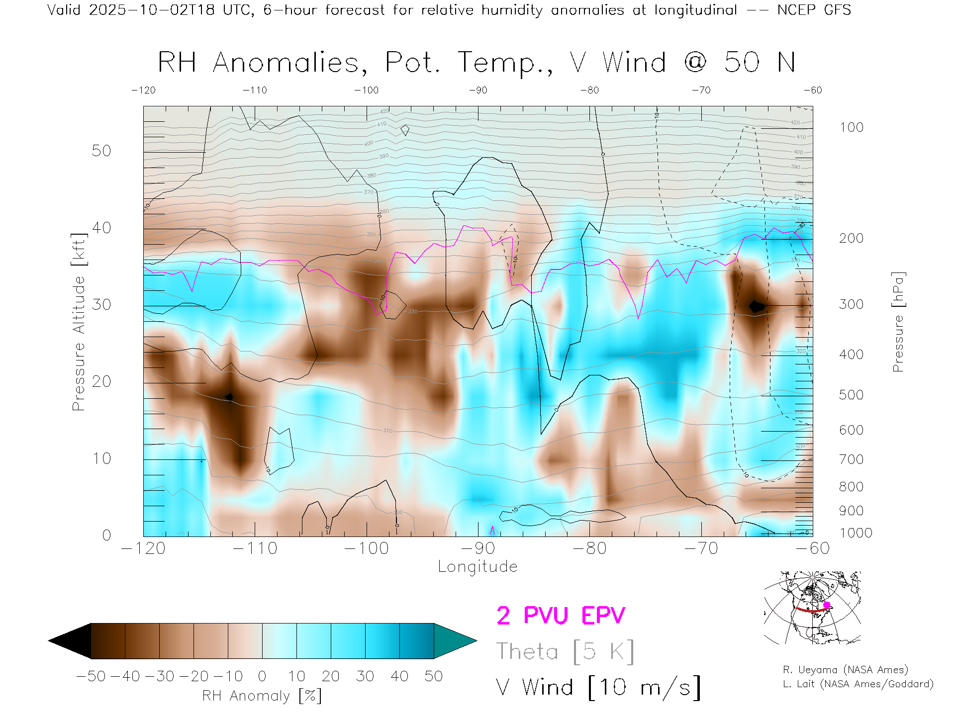 NCEP GFS Forecast Rel. Hum. X-Section (50 N)