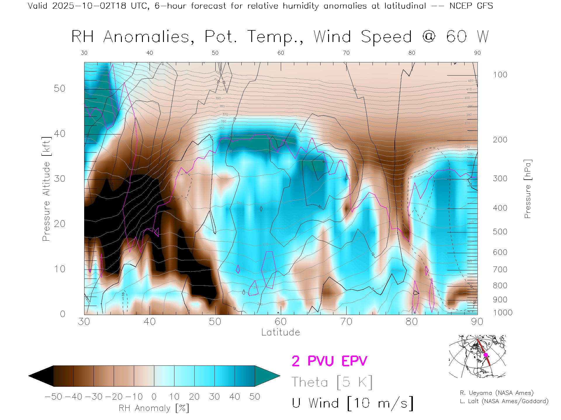 NCEP GFS Forecast Rel. Hum. X-Section (60 W)