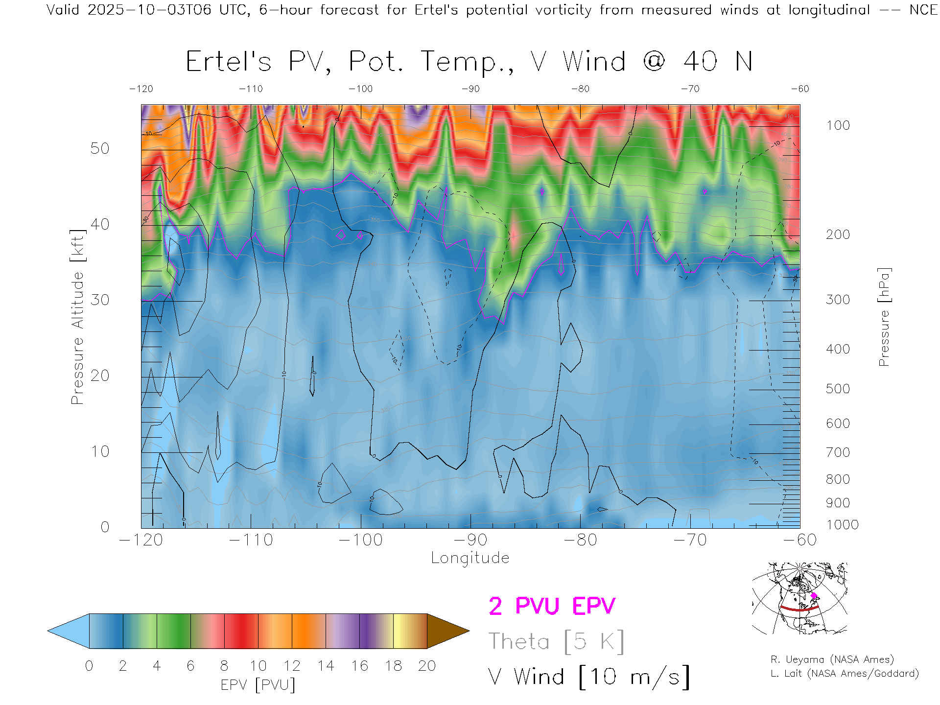 NCEP GFS Forecast PV X-Section (40 N)