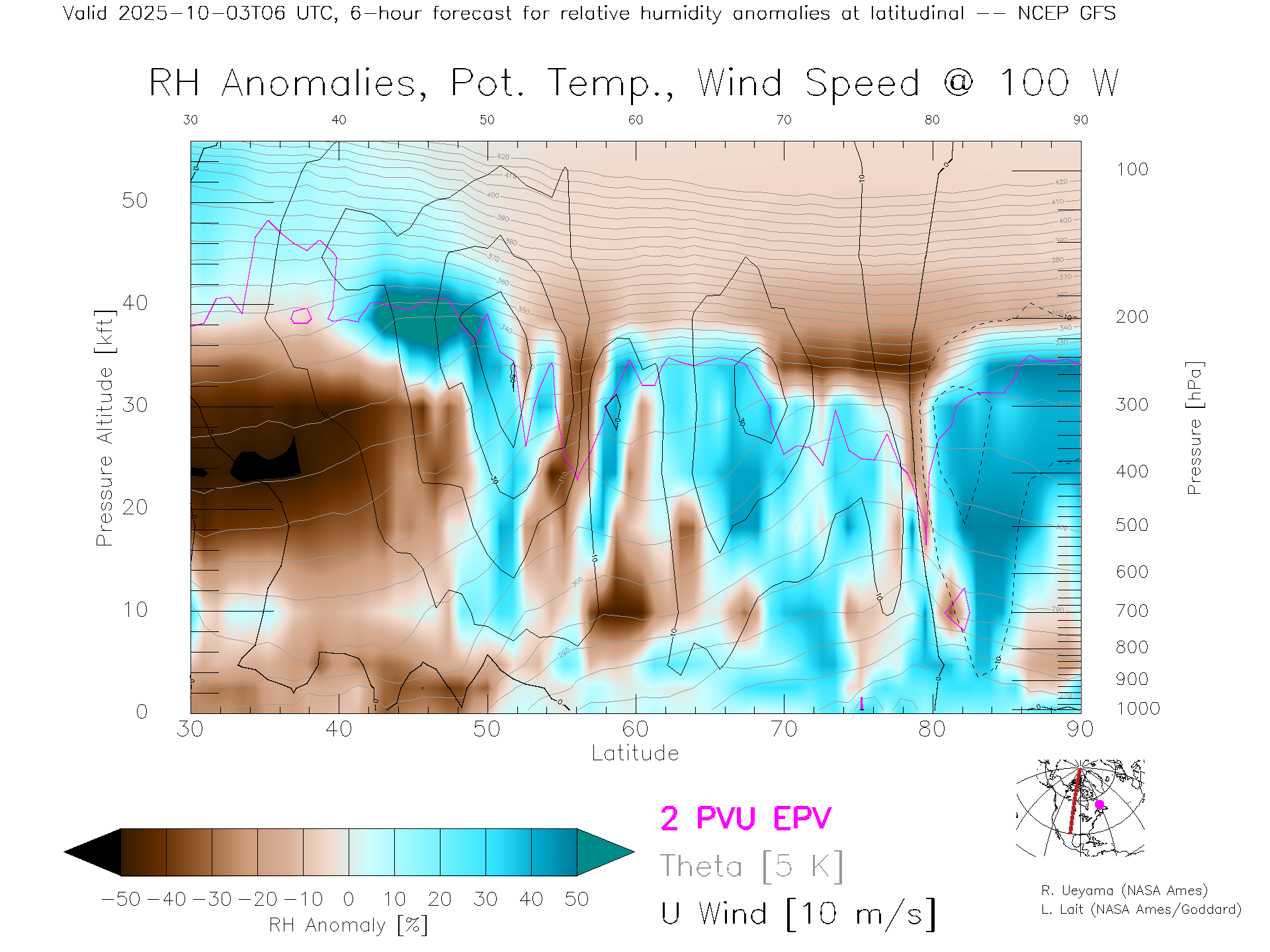 NCEP GFS Forecast Rel. Hum. X-Section (100 W)