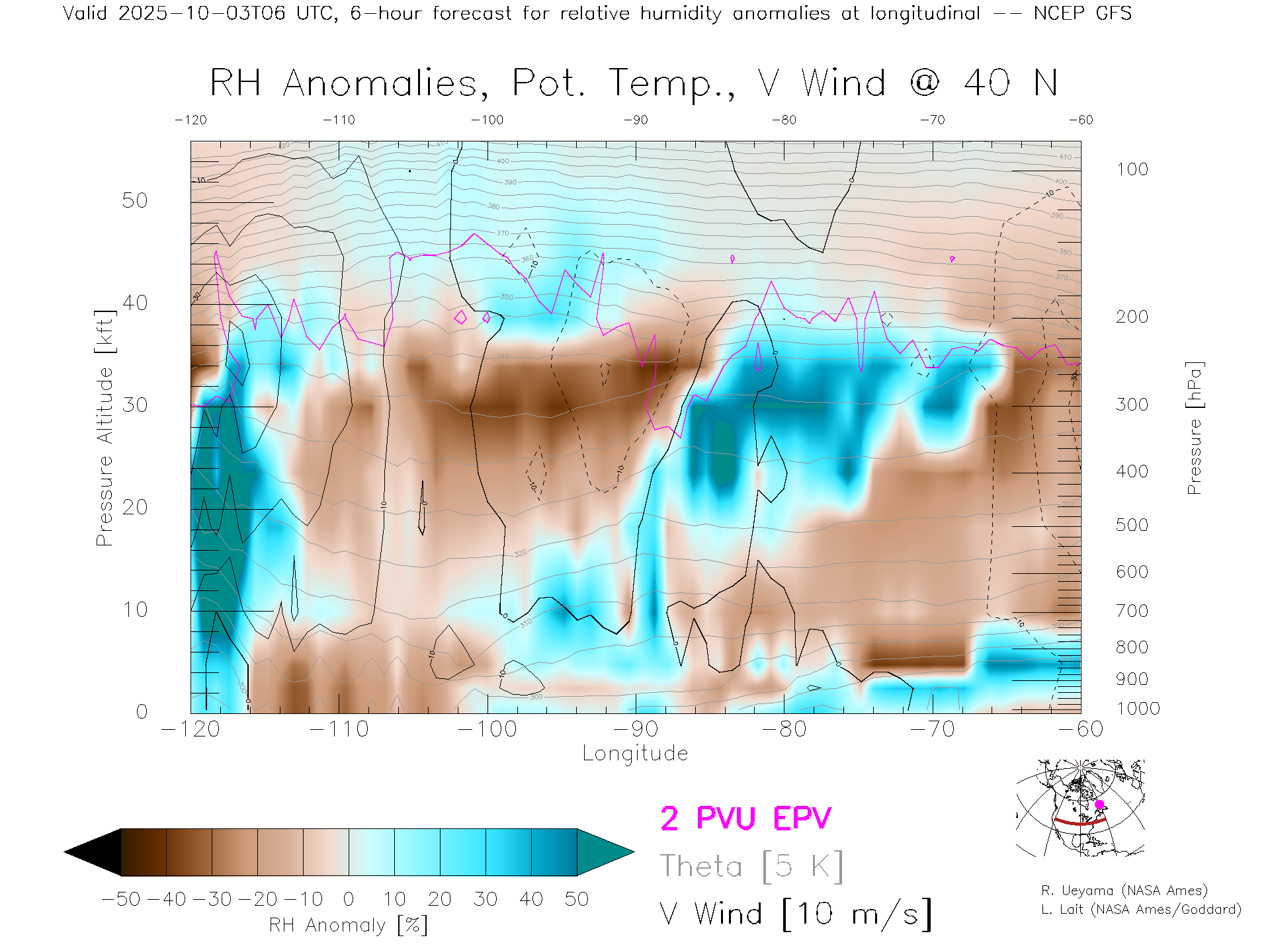 NCEP GFS Forecast Rel. Hum. X-Section (40 N)