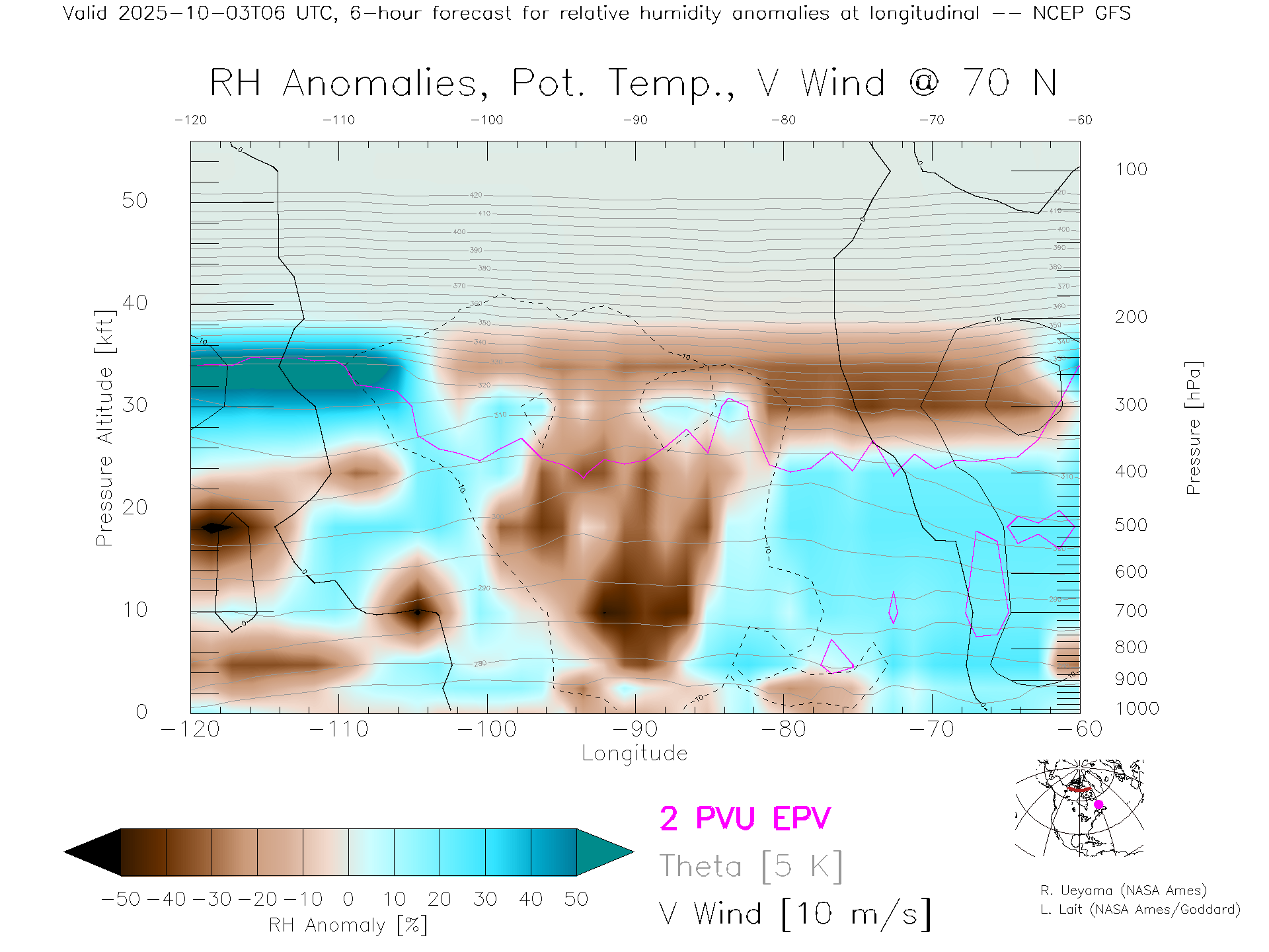 NCEP GFS Forecast Rel. Hum. X-Section (70 N)