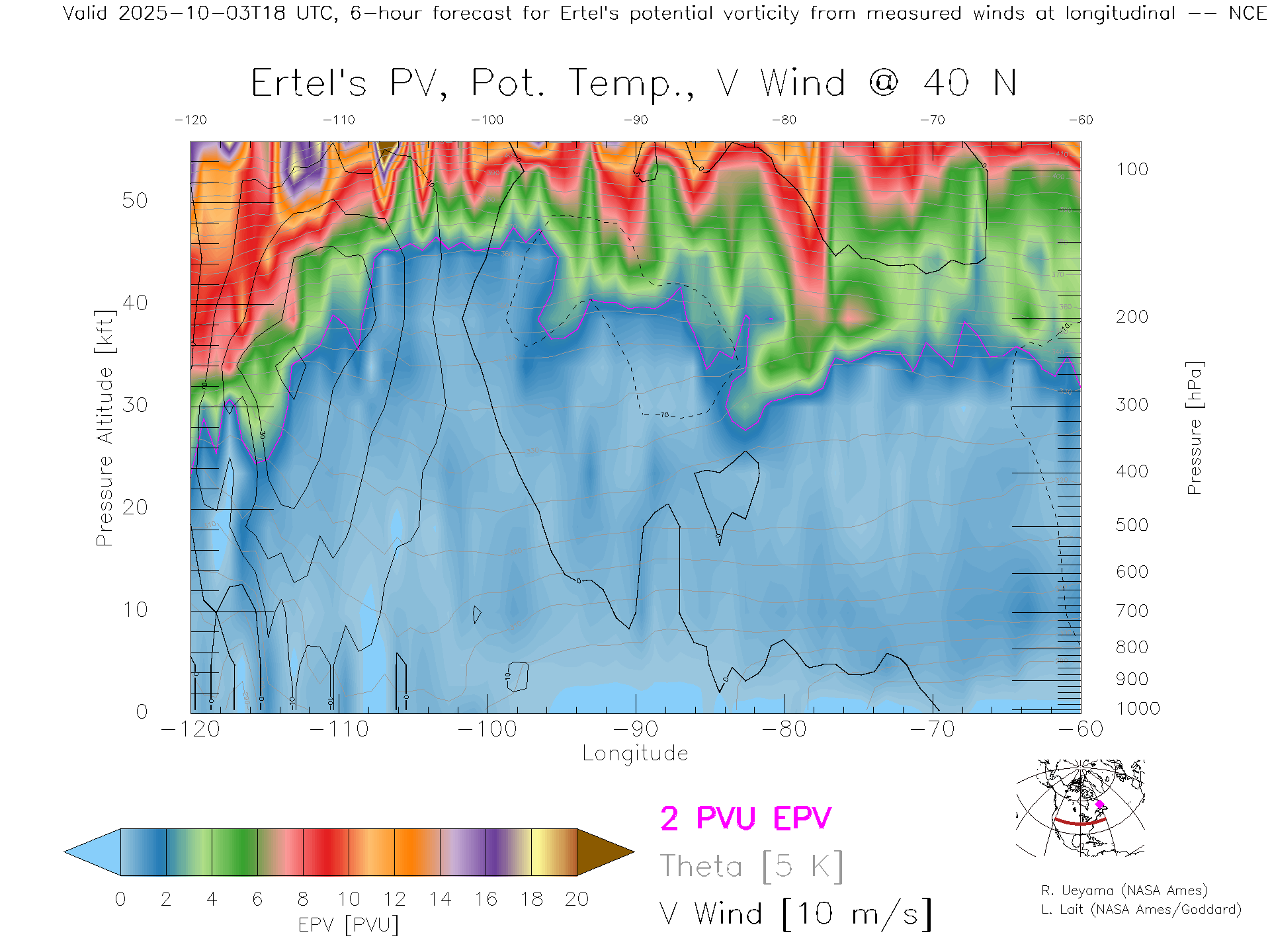NCEP GFS Forecast PV X-Section (40 N)
