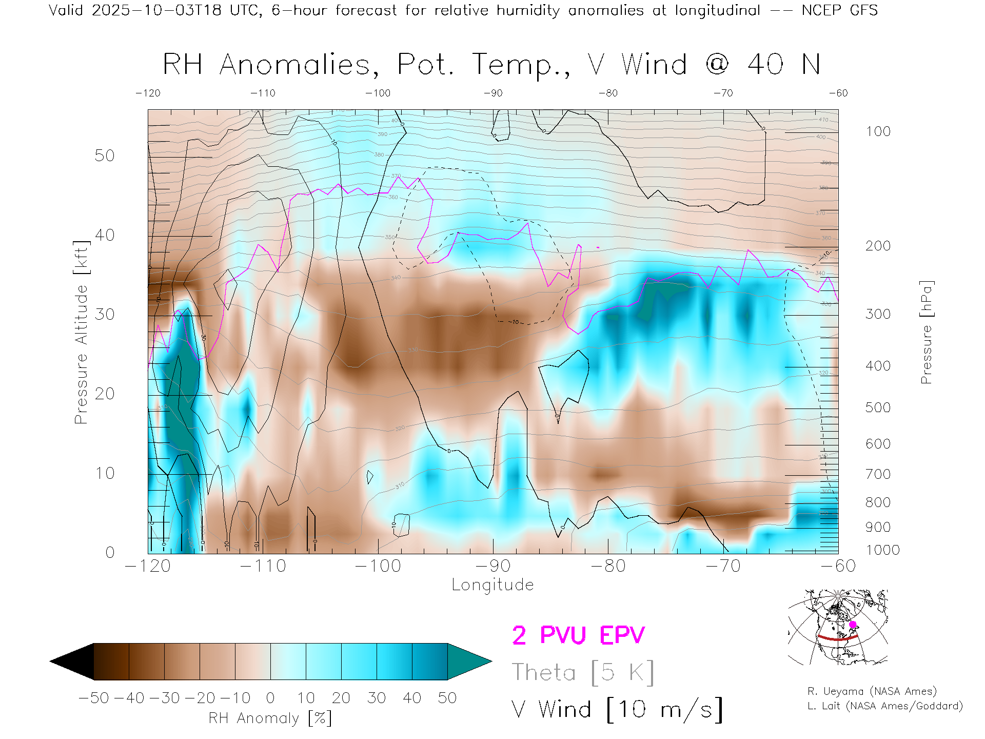 NCEP GFS Forecast Rel. Hum. X-Section (40 N)