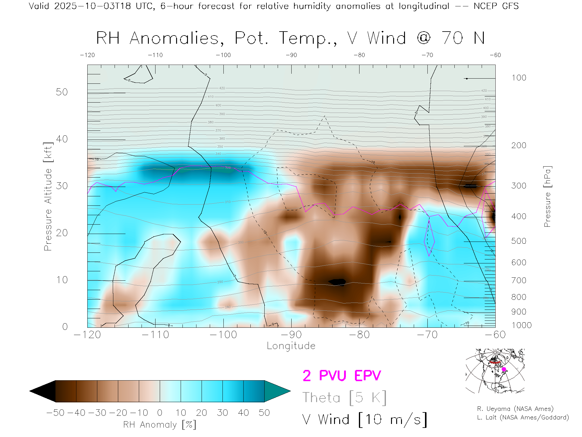 NCEP GFS Forecast Rel. Hum. X-Section (70 N)