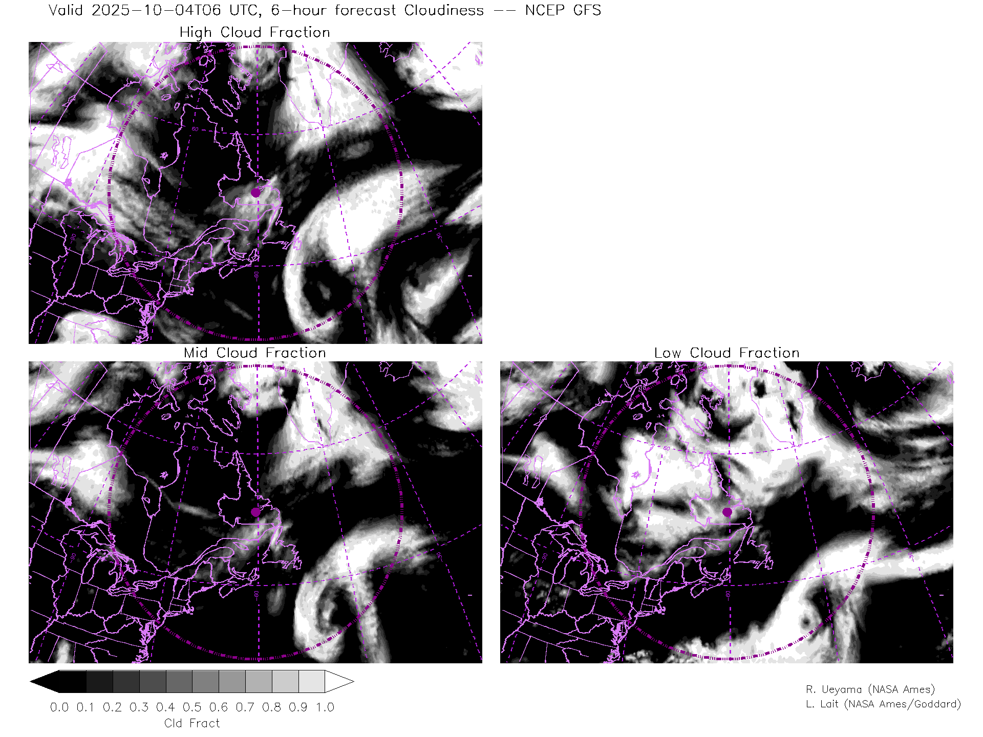 NCEP GFS Forecast Cloud Fraction (High, Mid, Low)