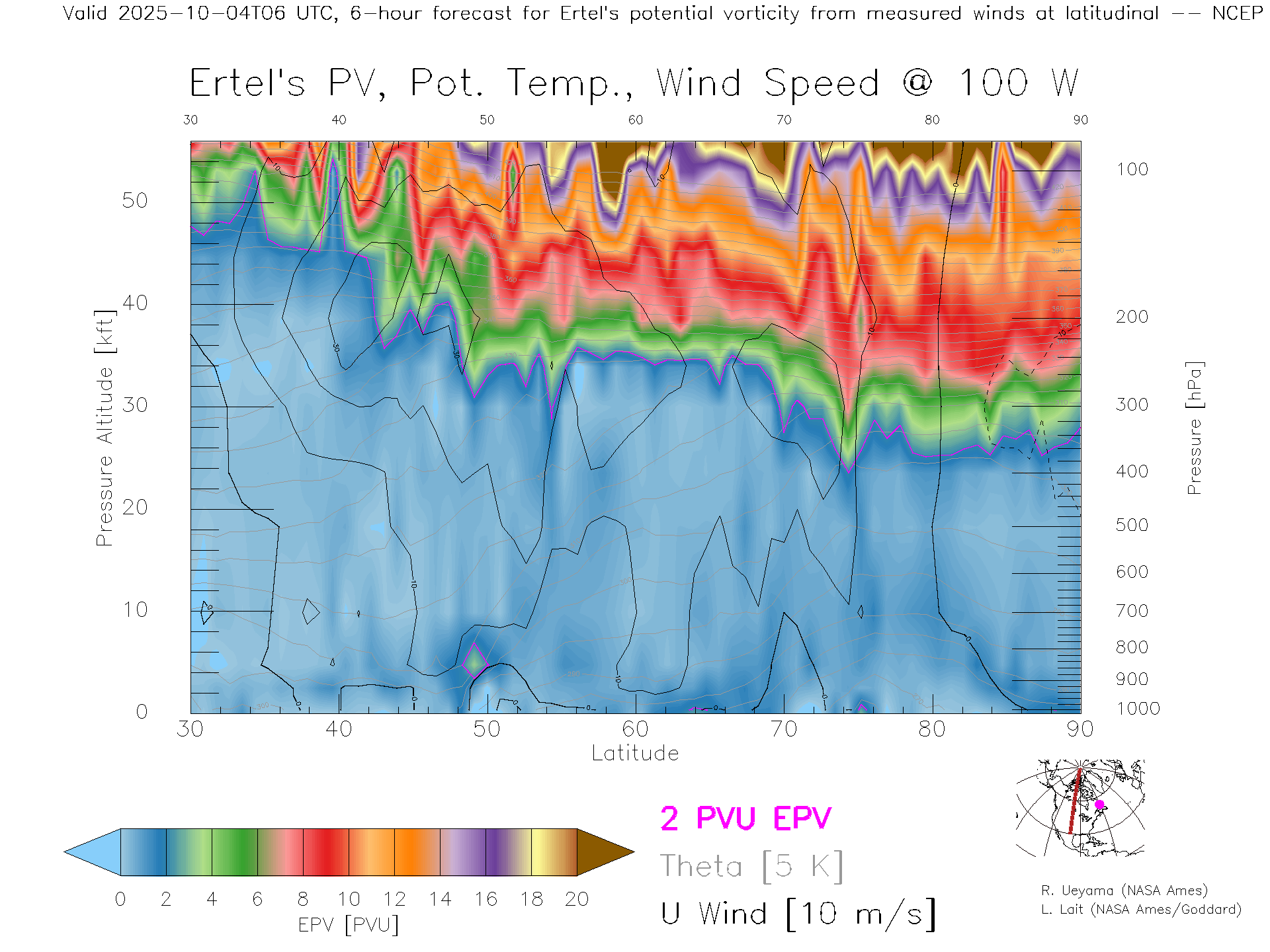 NCEP GFS Forecast PV X-Section (100 W)