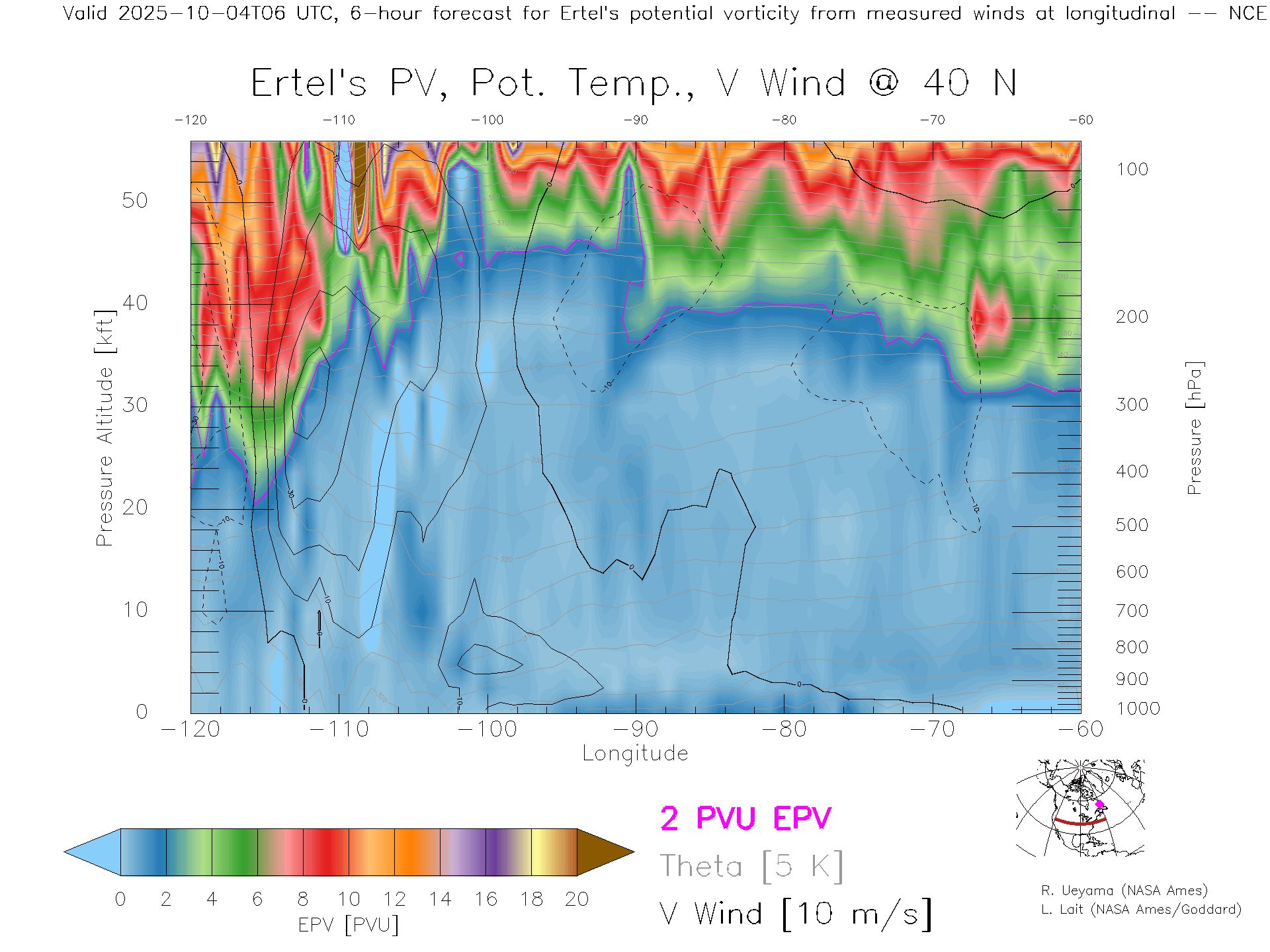 NCEP GFS Forecast PV X-Section (40 N)