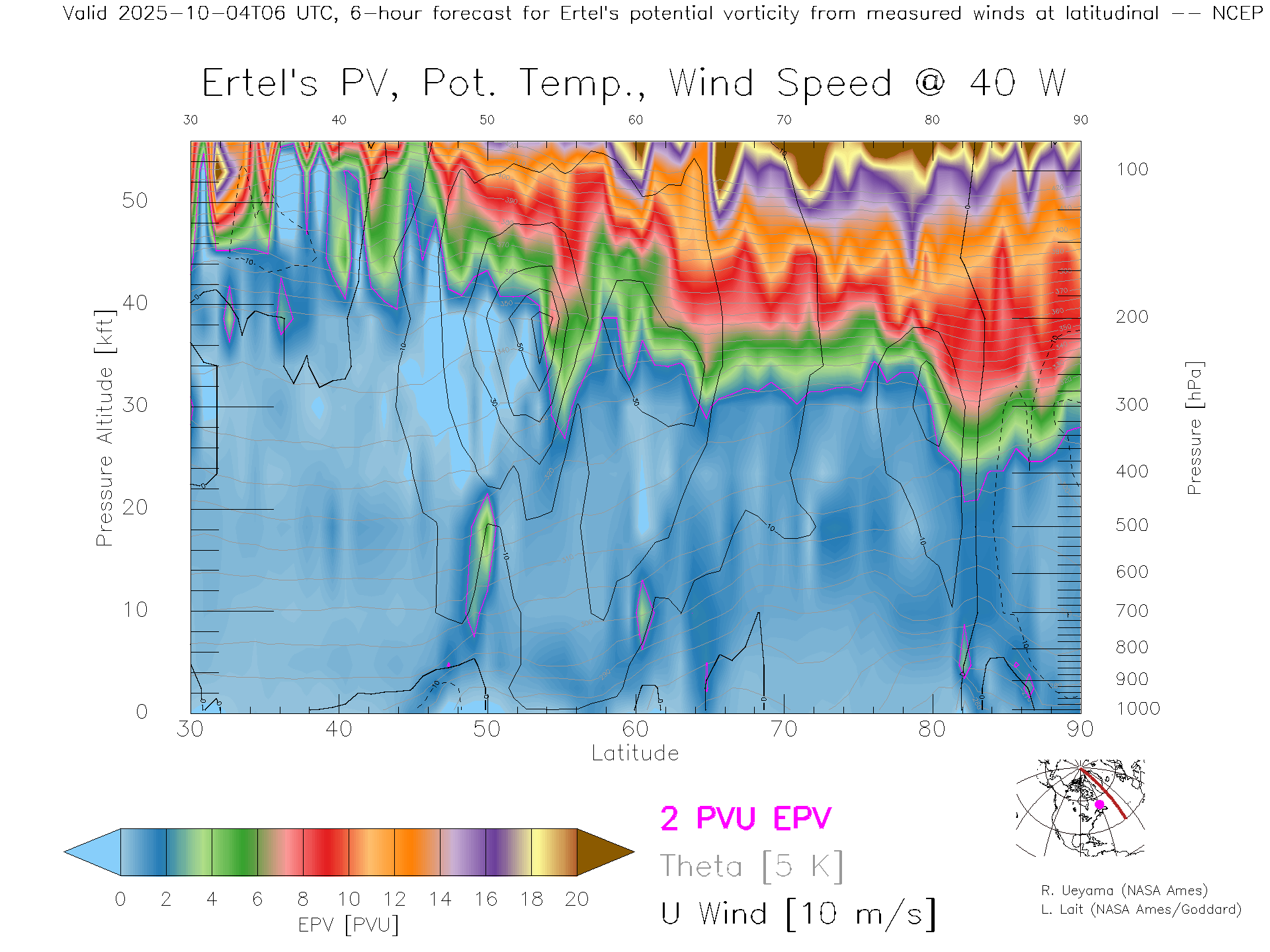 NCEP GFS Forecast PV X-Section (40 W)