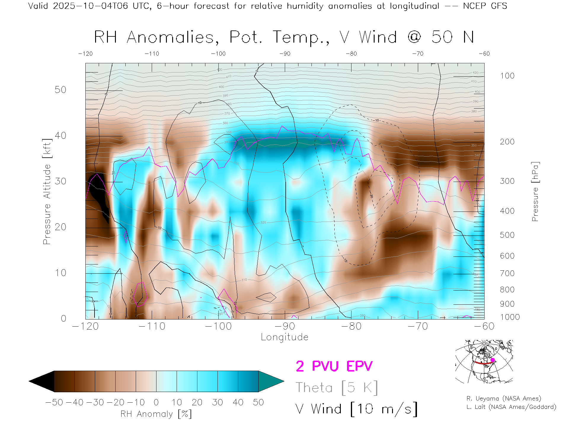 NCEP GFS Forecast Rel. Hum. X-Section (50 N)