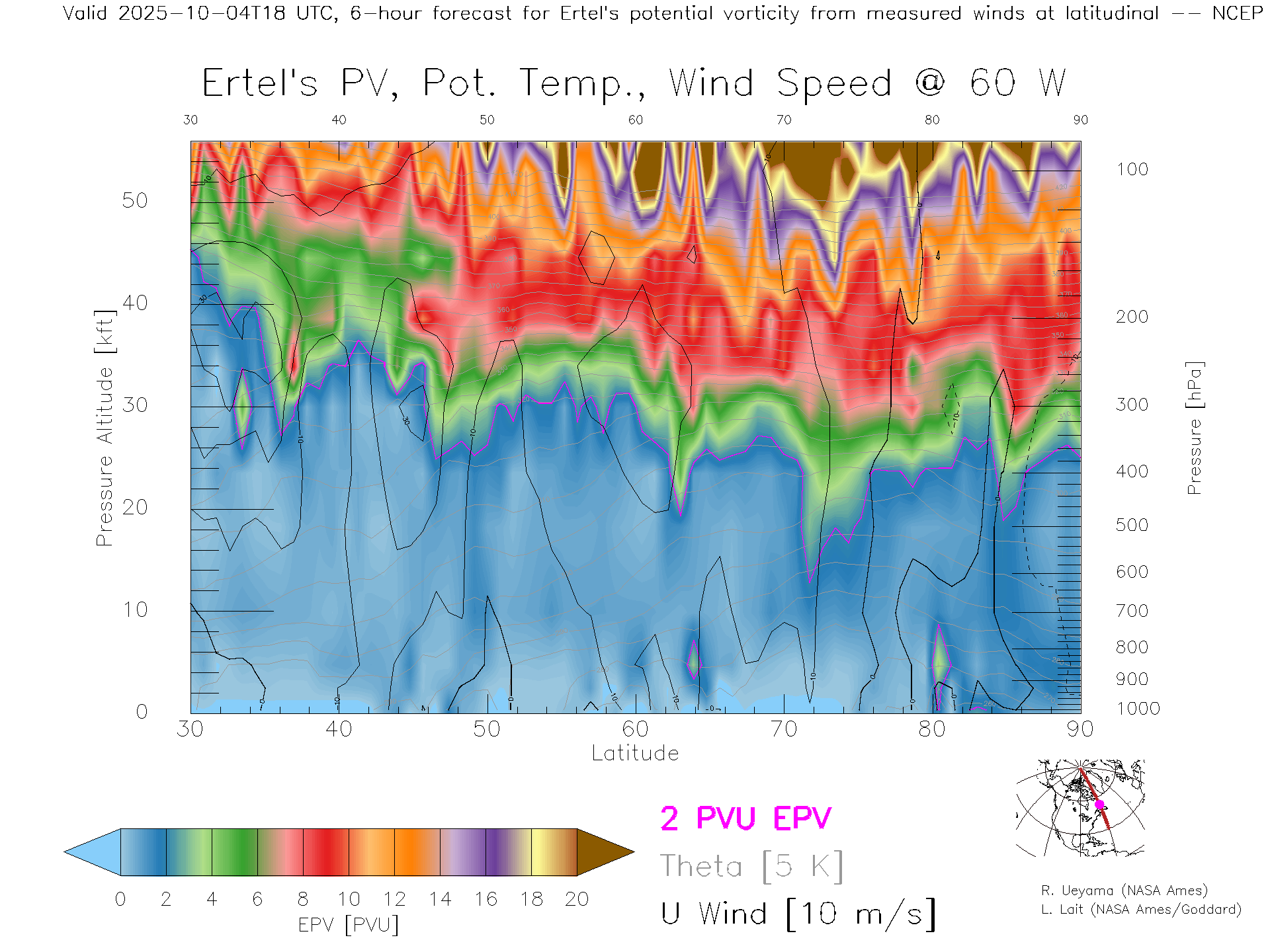 NCEP GFS Forecast PV X-Section (60 W)