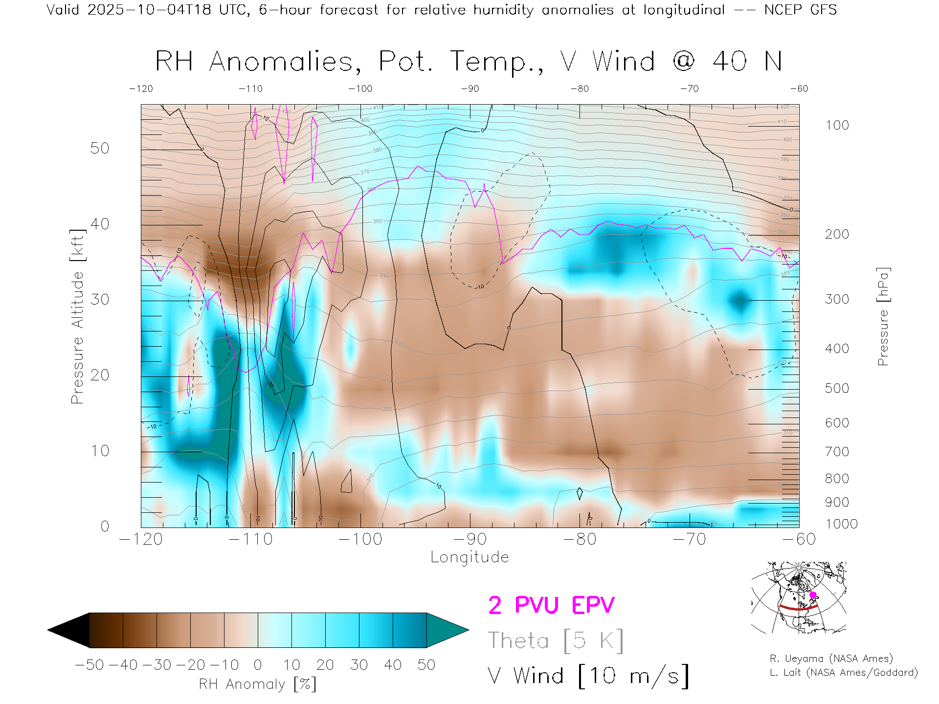 NCEP GFS Forecast Rel. Hum. X-Section (40 N)