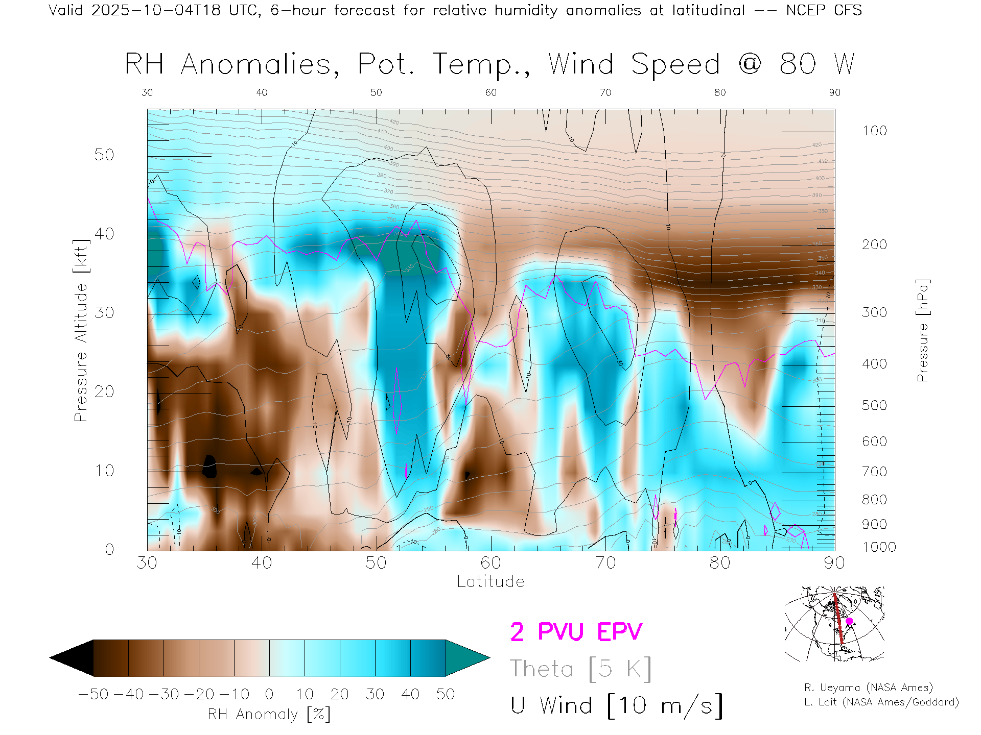 NCEP GFS Forecast Rel. Hum. X-Section (80 W)