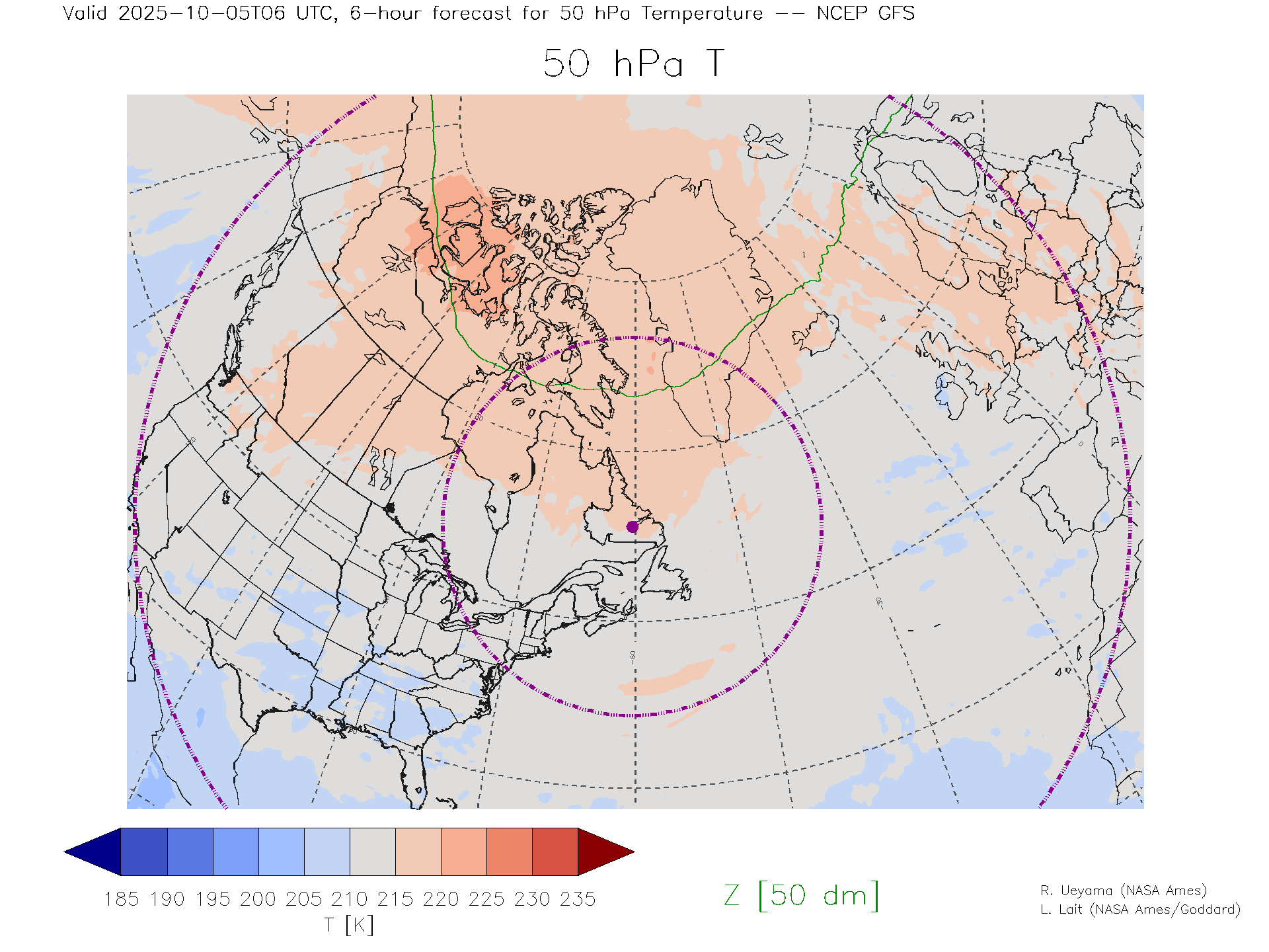 NCEP GFS Forecast 50 hPa Temp.