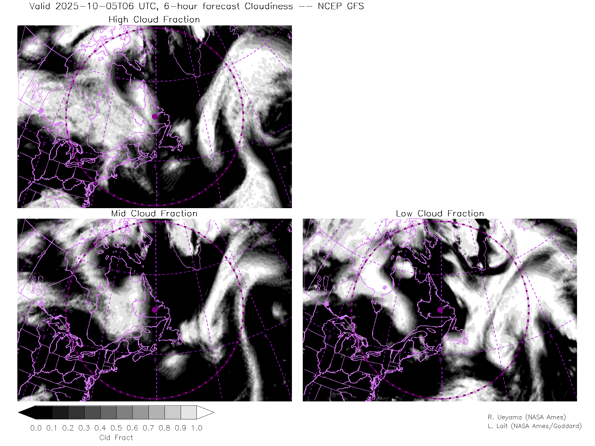 NCEP GFS Forecast Cloud Fraction (High, Mid, Low)