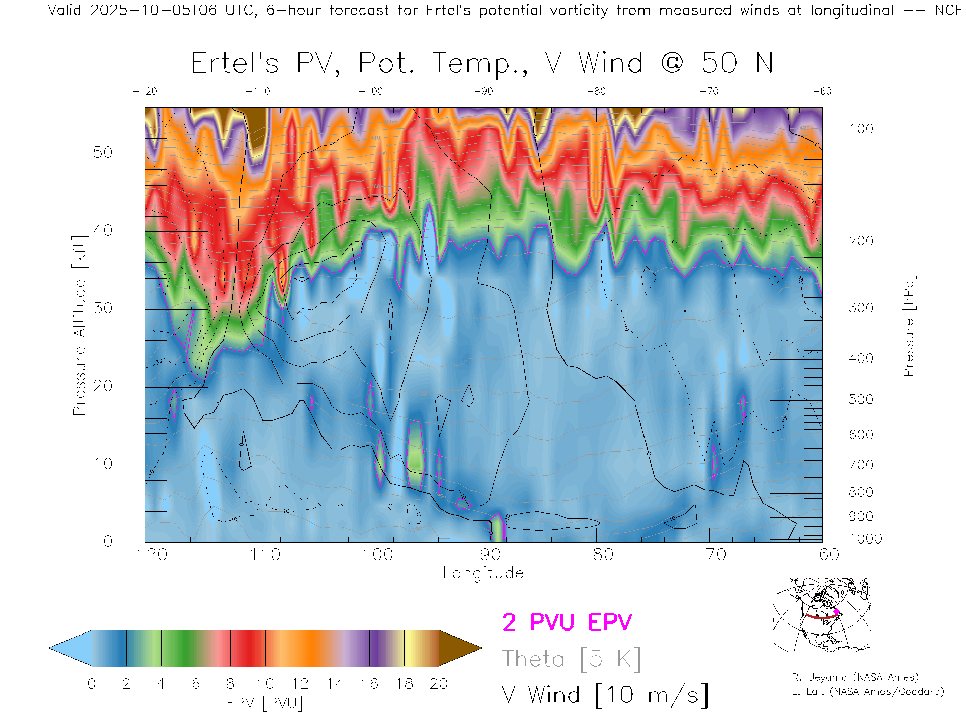 NCEP GFS Forecast PV X-Section (50 N)