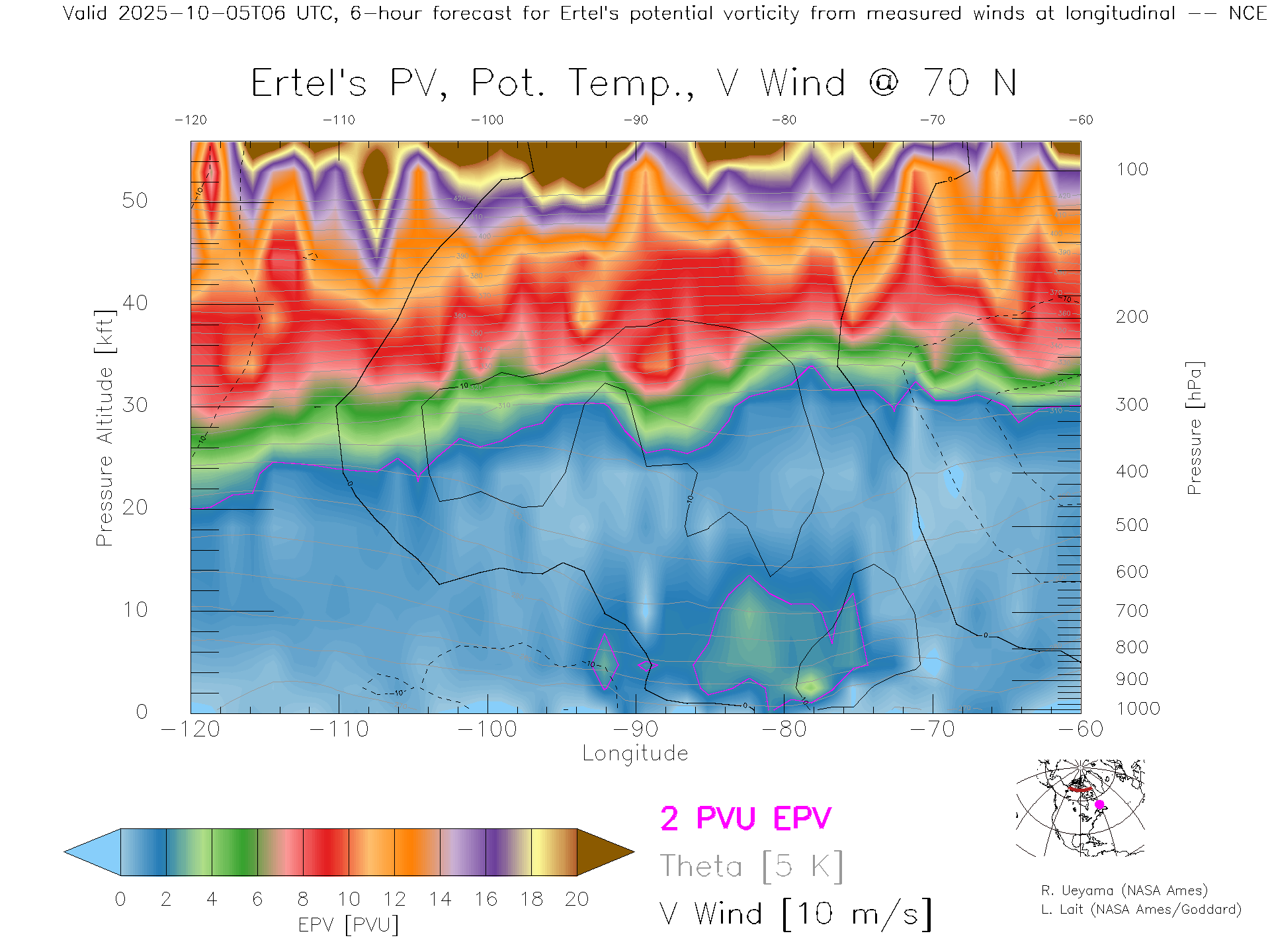 NCEP GFS Forecast PV X-Section (70 N)