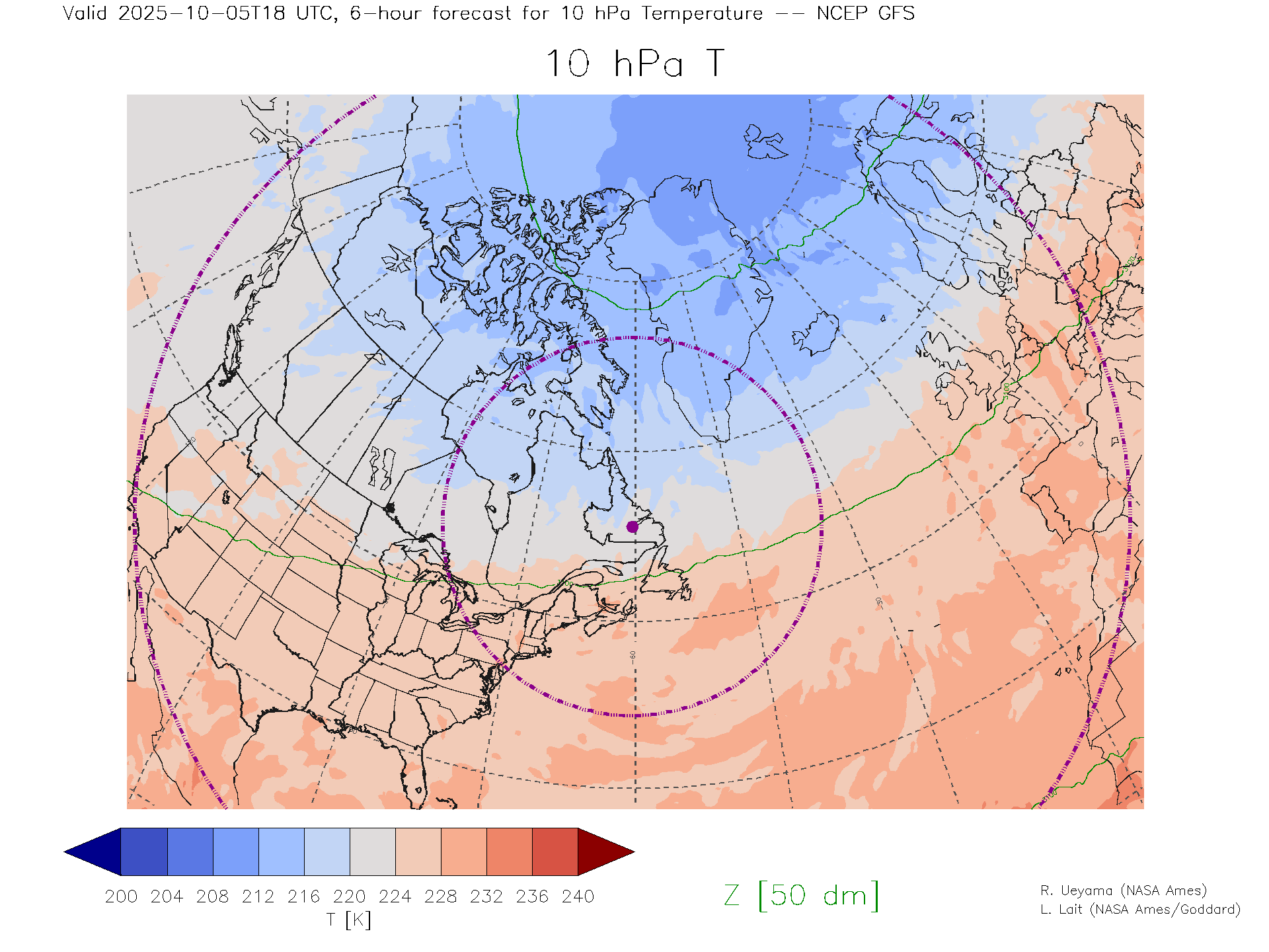 NCEP GFS Forecast 10 hPa Temp.