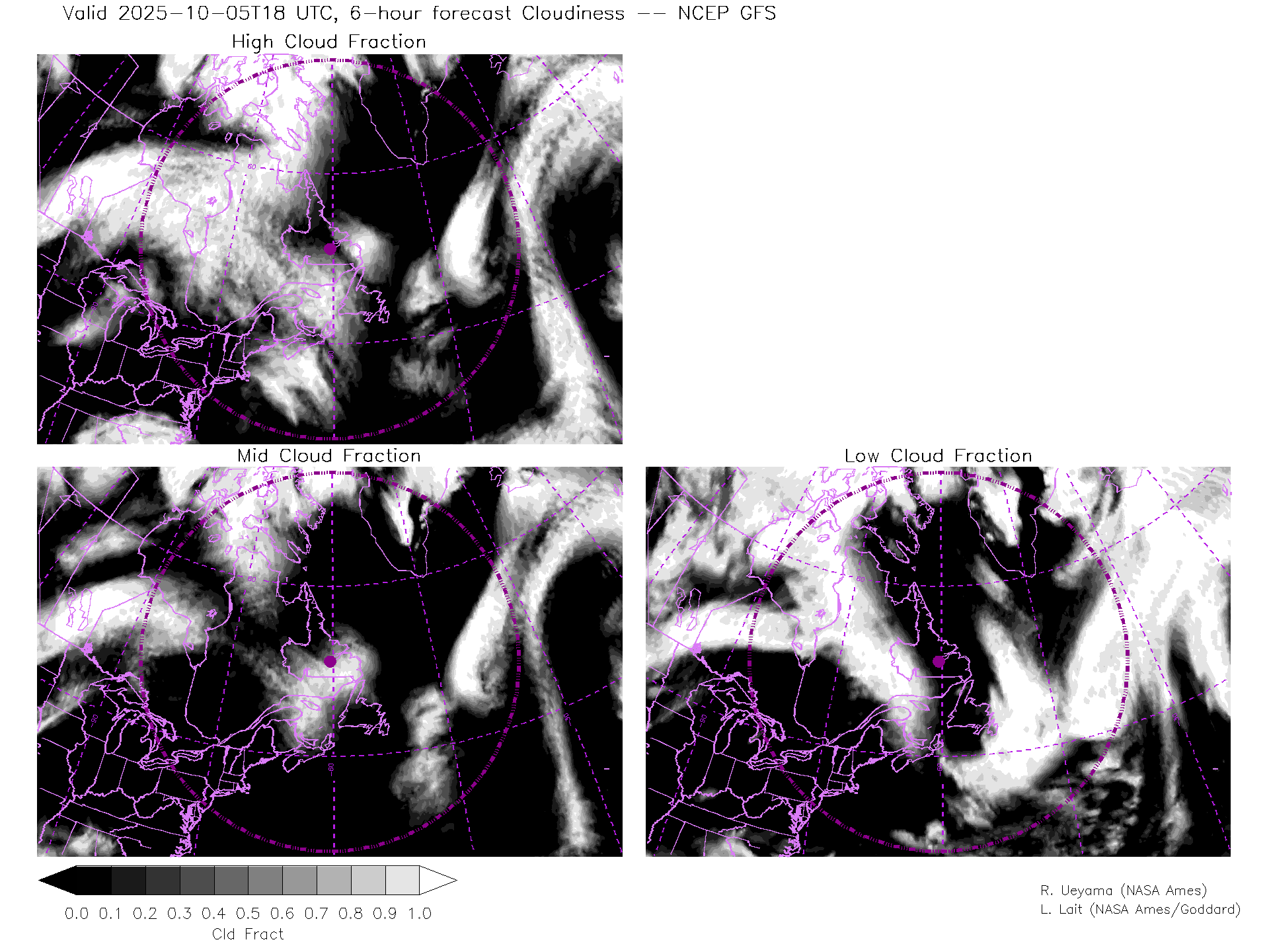 NCEP GFS Forecast Cloud Fraction (High, Mid, Low)