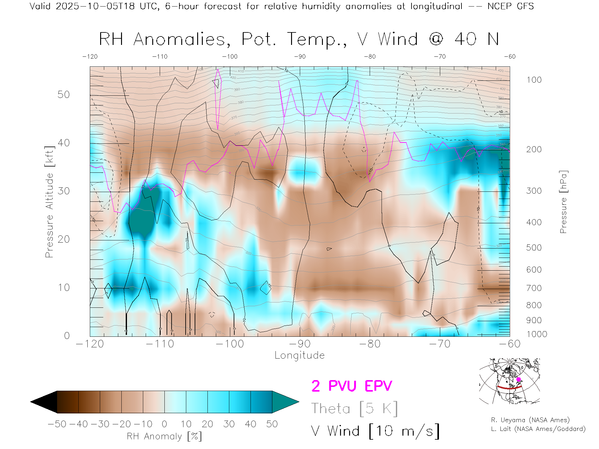 NCEP GFS Forecast Rel. Hum. X-Section (40 N)