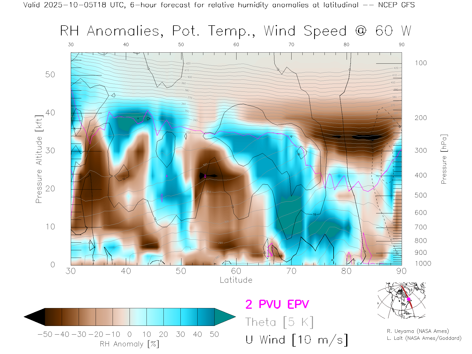 NCEP GFS Forecast Rel. Hum. X-Section (60 W)