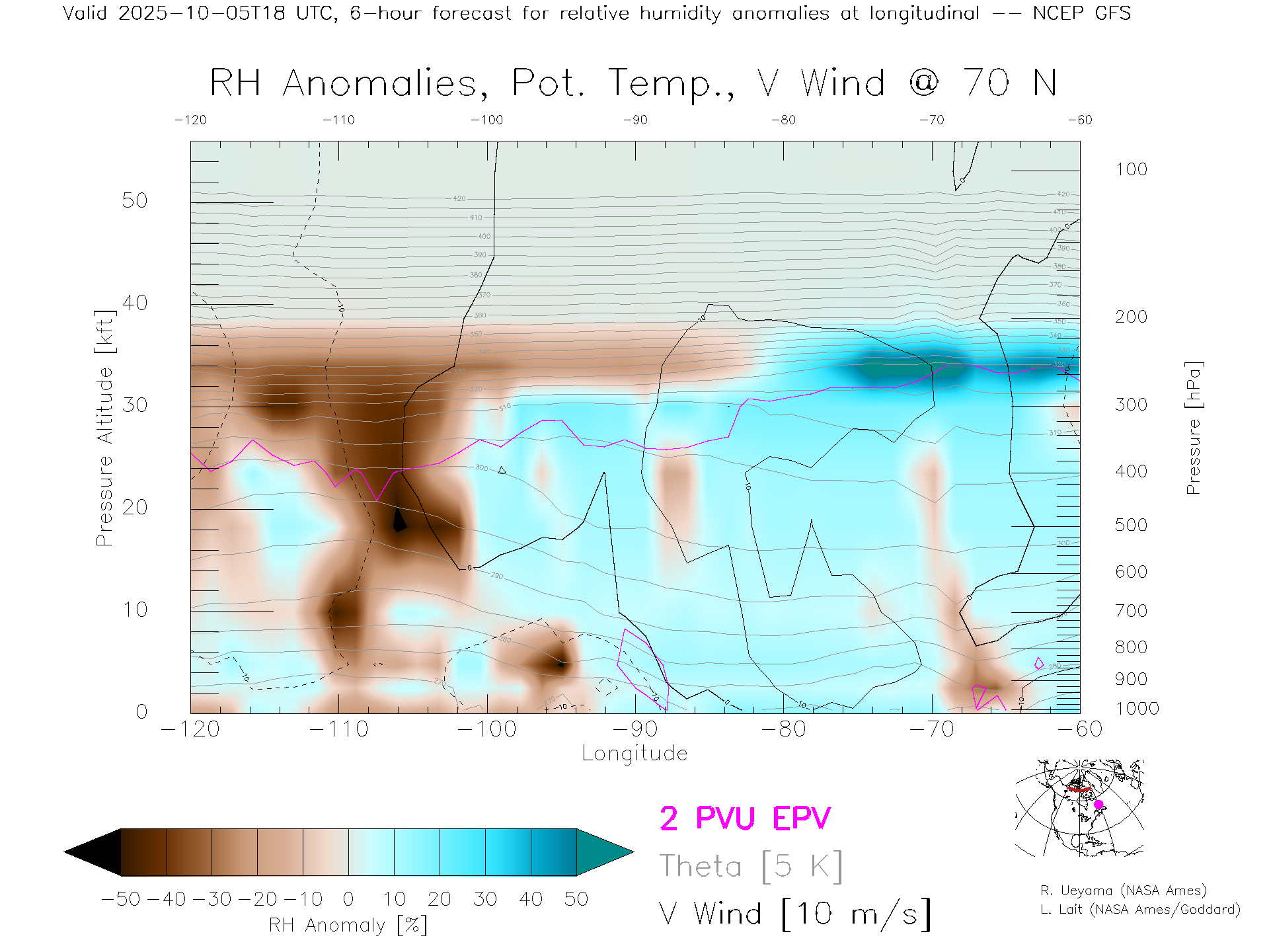 NCEP GFS Forecast Rel. Hum. X-Section (70 N)