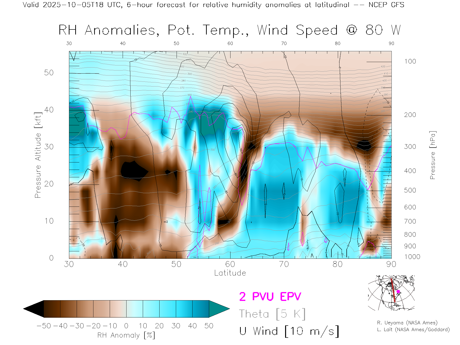 NCEP GFS Forecast Rel. Hum. X-Section (80 W)