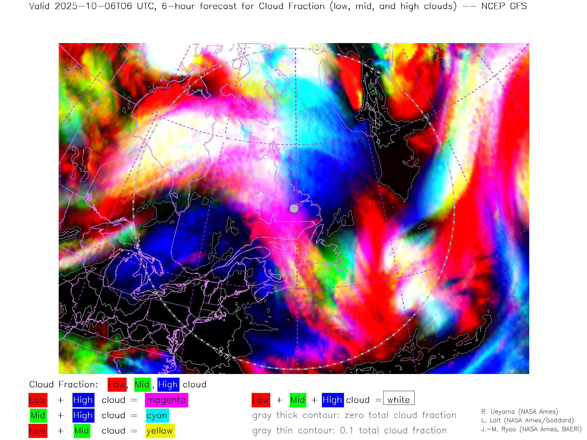 NCEP GFS Forecast Low-, Mid- and High-level Cloud Fraction