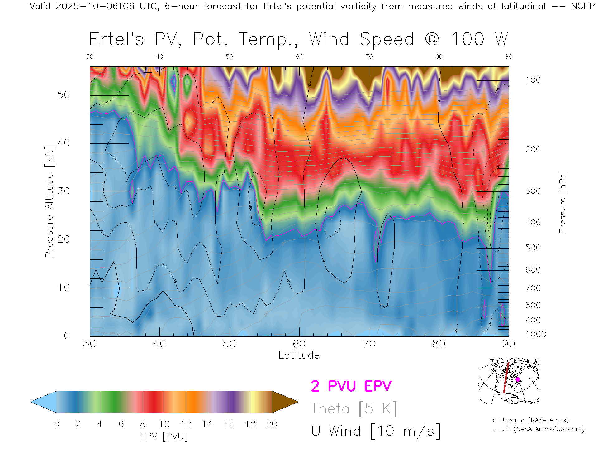 NCEP GFS Forecast PV X-Section (100 W)
