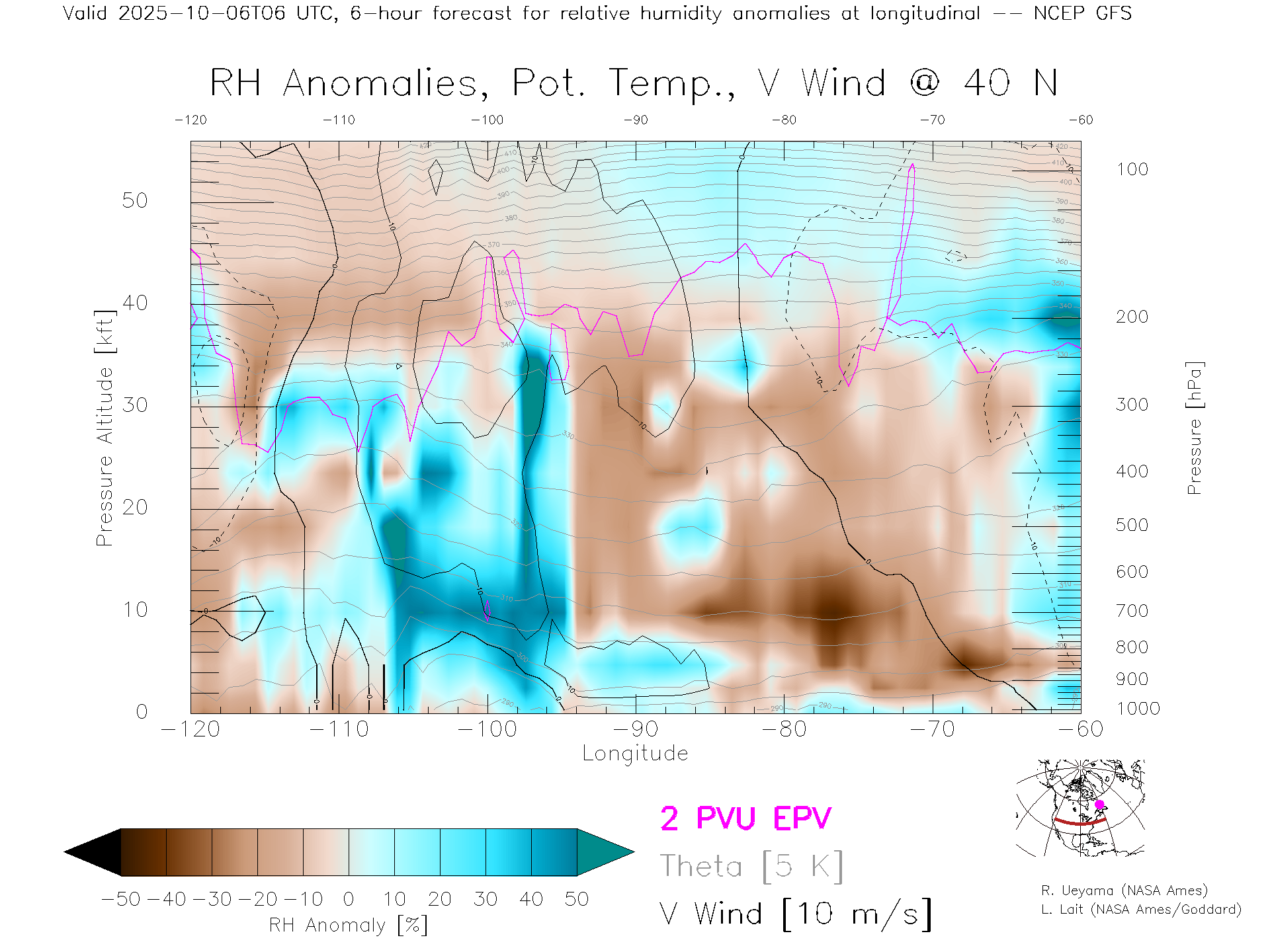 NCEP GFS Forecast Rel. Hum. X-Section (40 N)