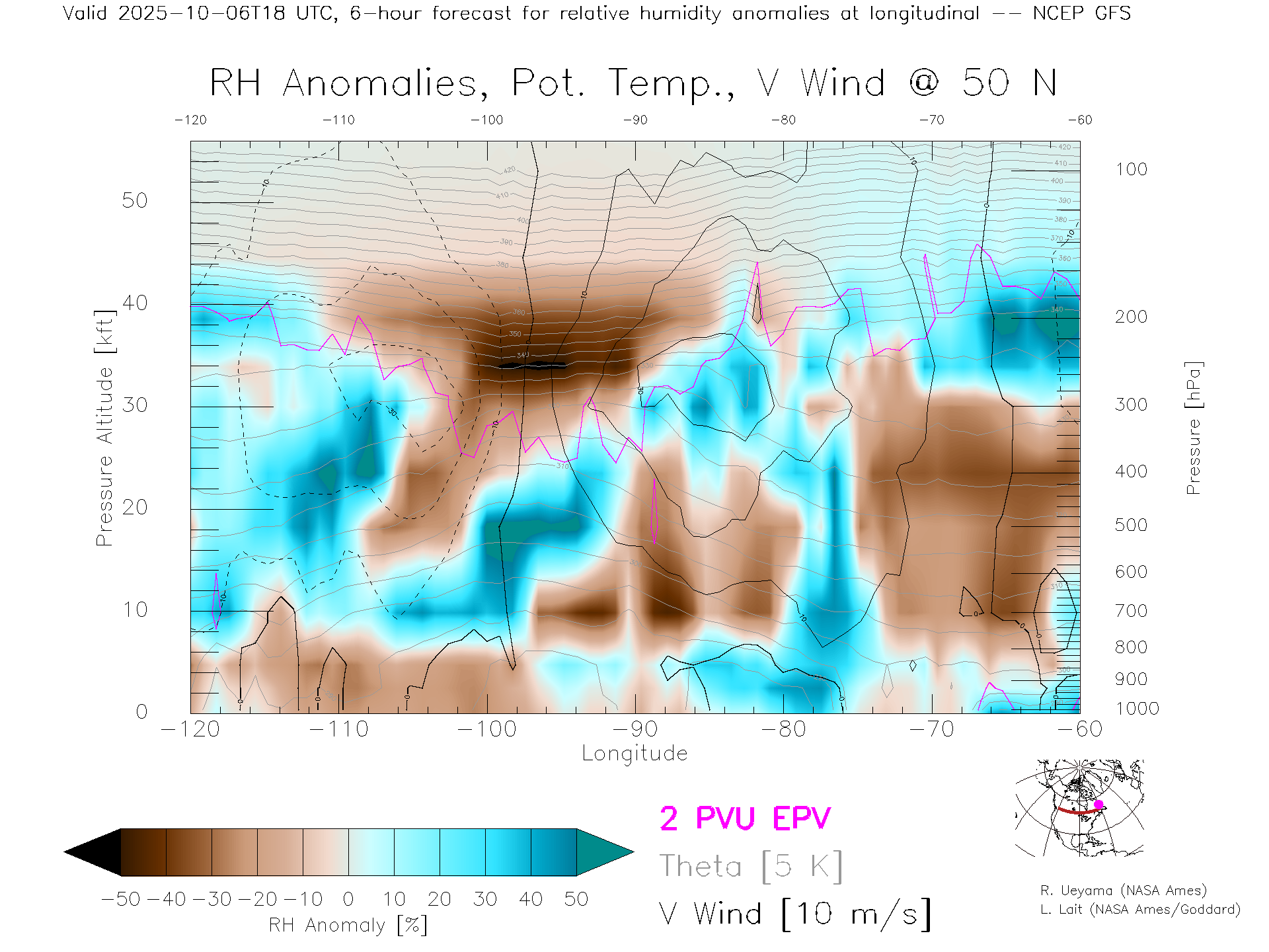 NCEP GFS Forecast Rel. Hum. X-Section (50 N)
