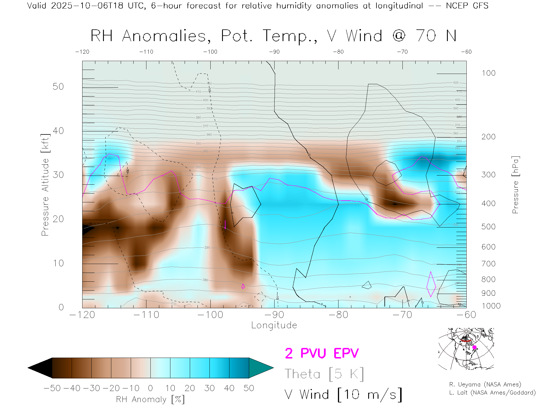 NCEP GFS Forecast Rel. Hum. X-Section (70 N)