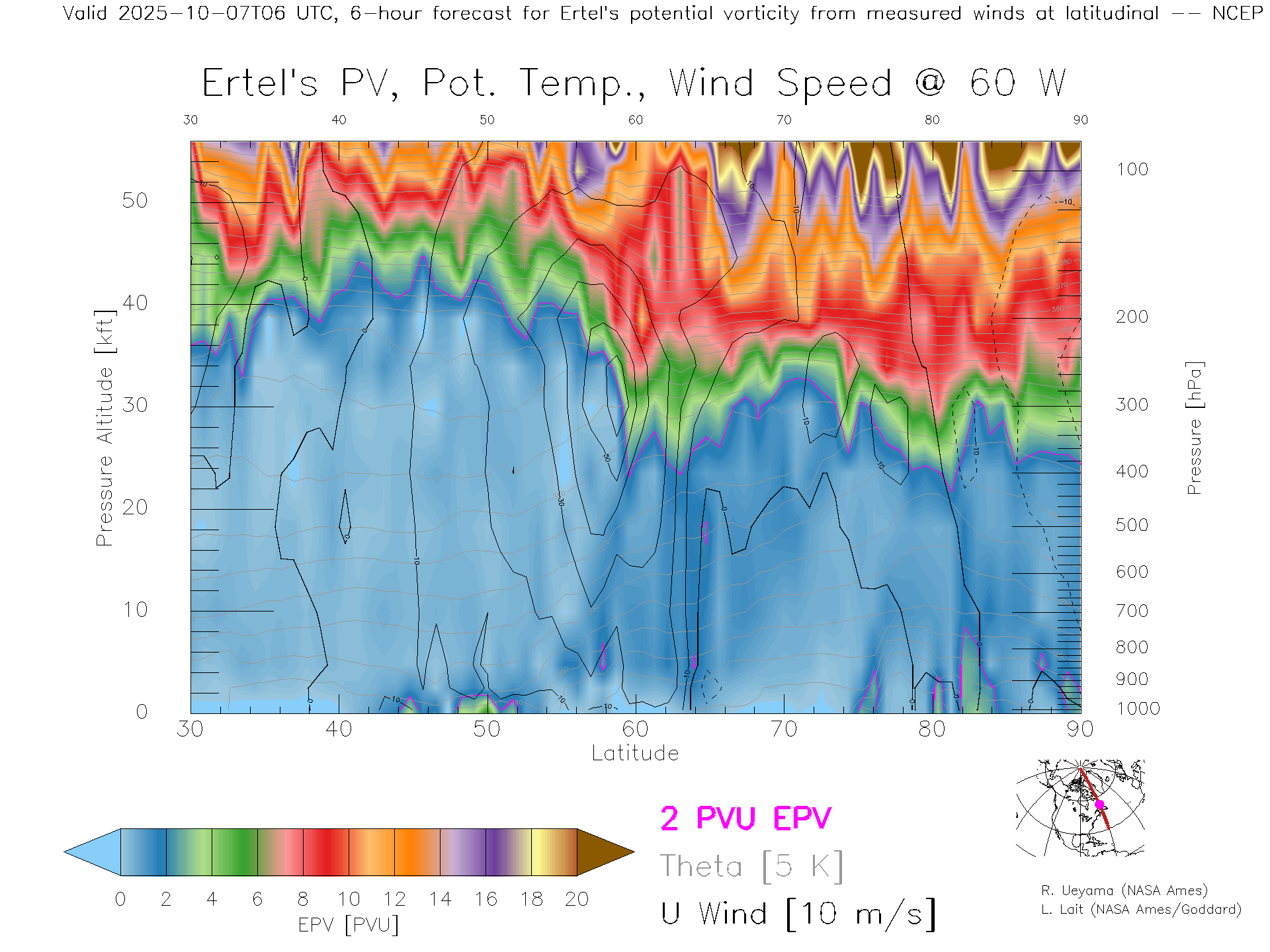 NCEP GFS Forecast PV X-Section (60 W)