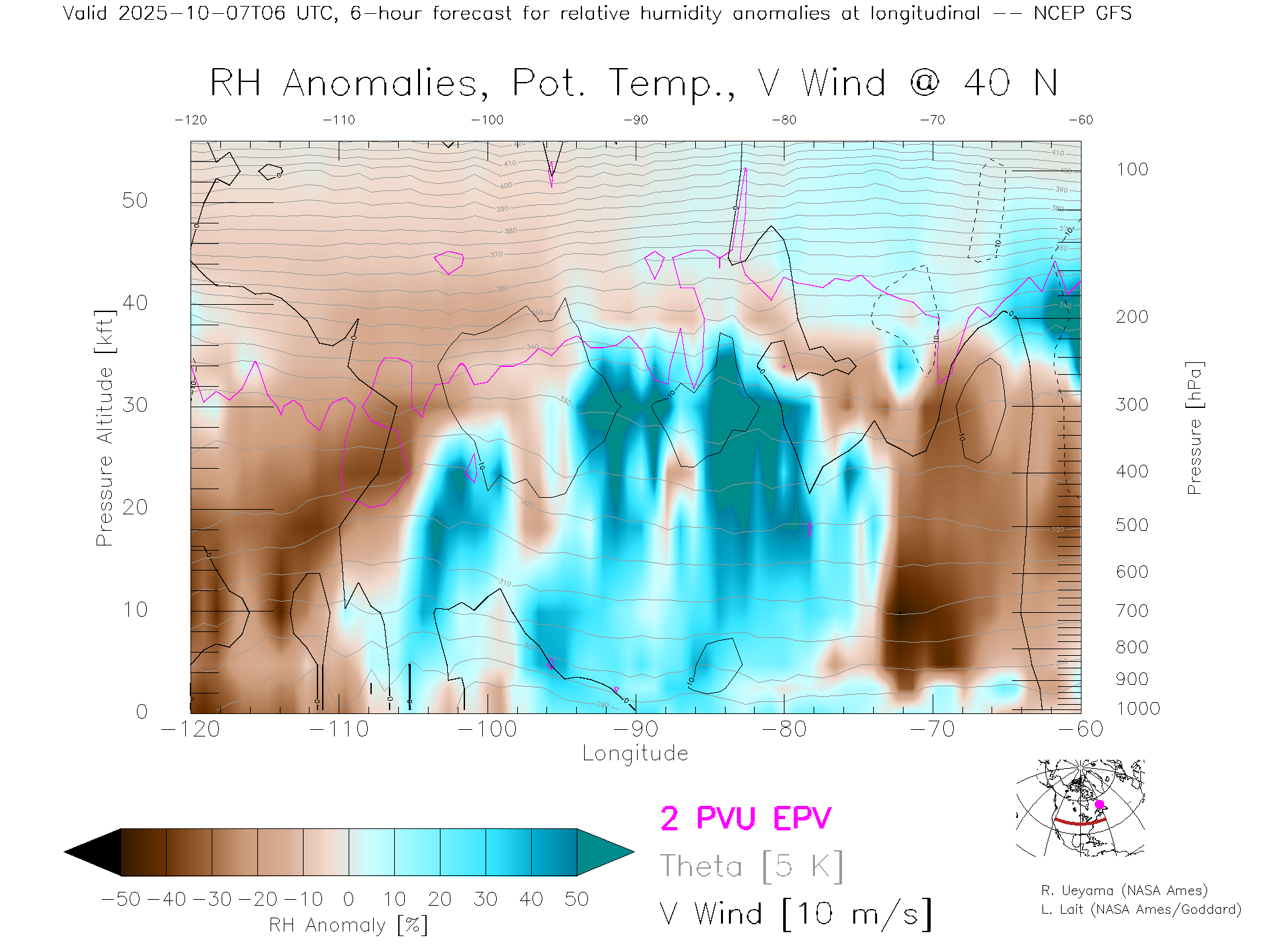 NCEP GFS Forecast Rel. Hum. X-Section (40 N)