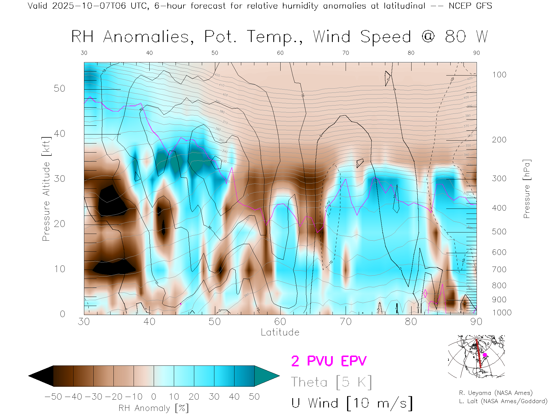 NCEP GFS Forecast Rel. Hum. X-Section (80 W)