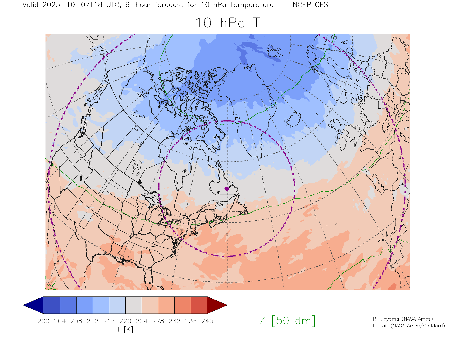 NCEP GFS Forecast 10 hPa Temp.