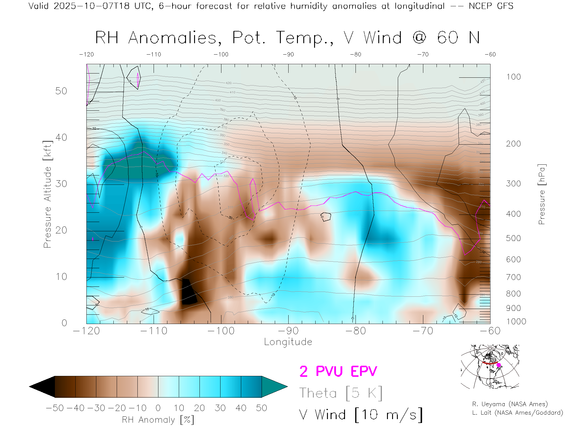 NCEP GFS Forecast Rel. Hum. X-Section (60 N)