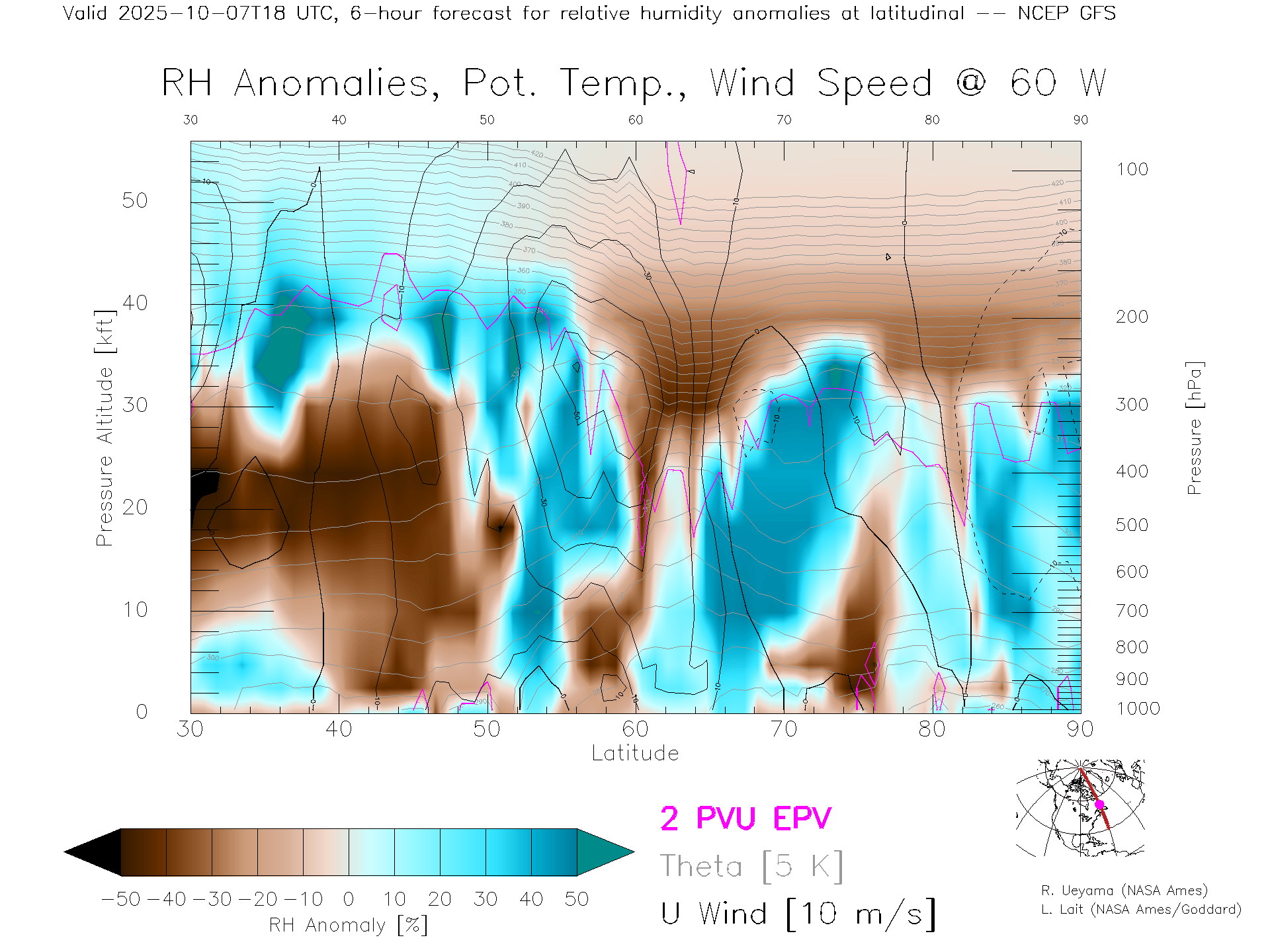 NCEP GFS Forecast Rel. Hum. X-Section (60 W)