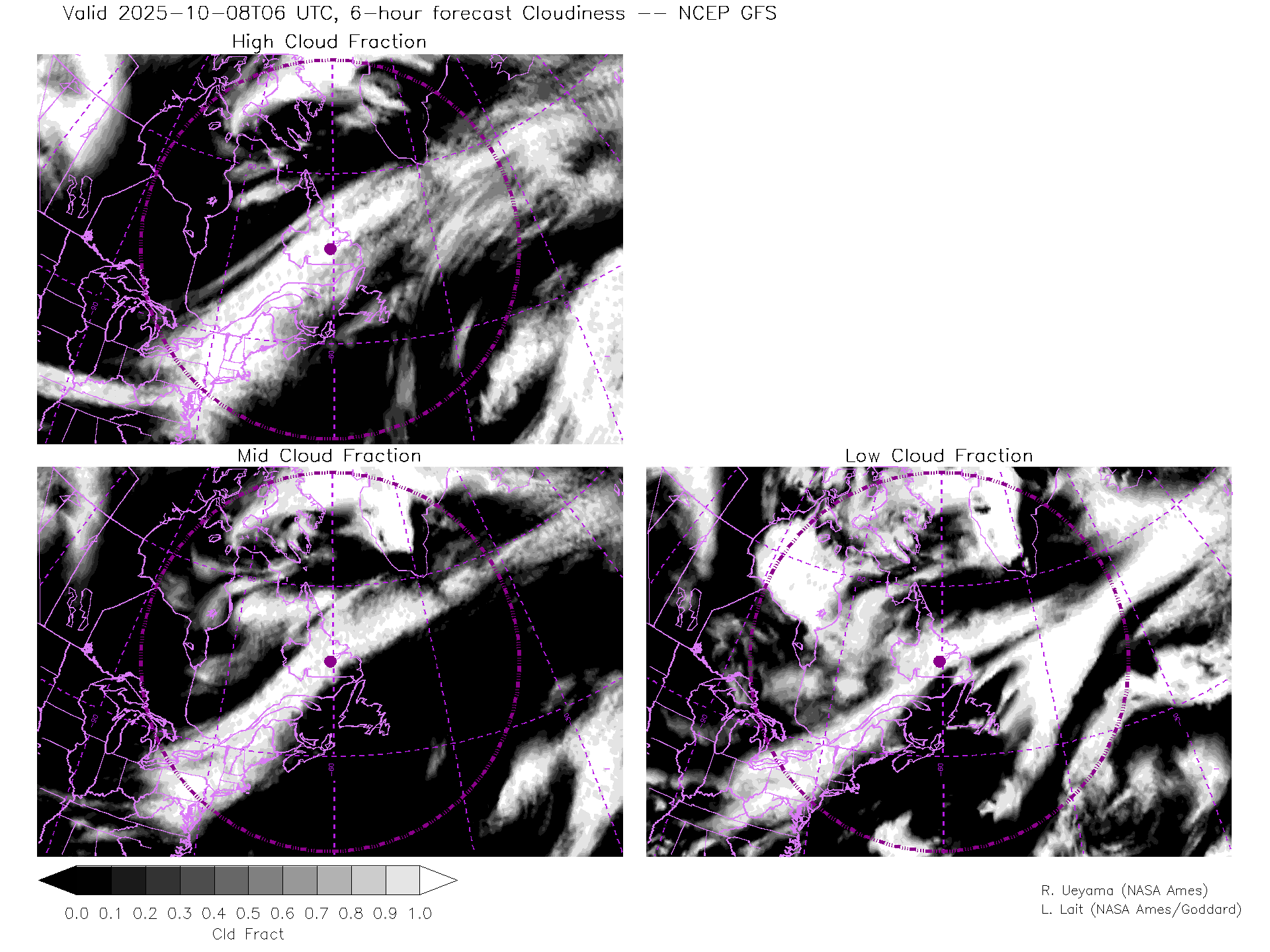 NCEP GFS Forecast Cloud Fraction (High, Mid, Low)