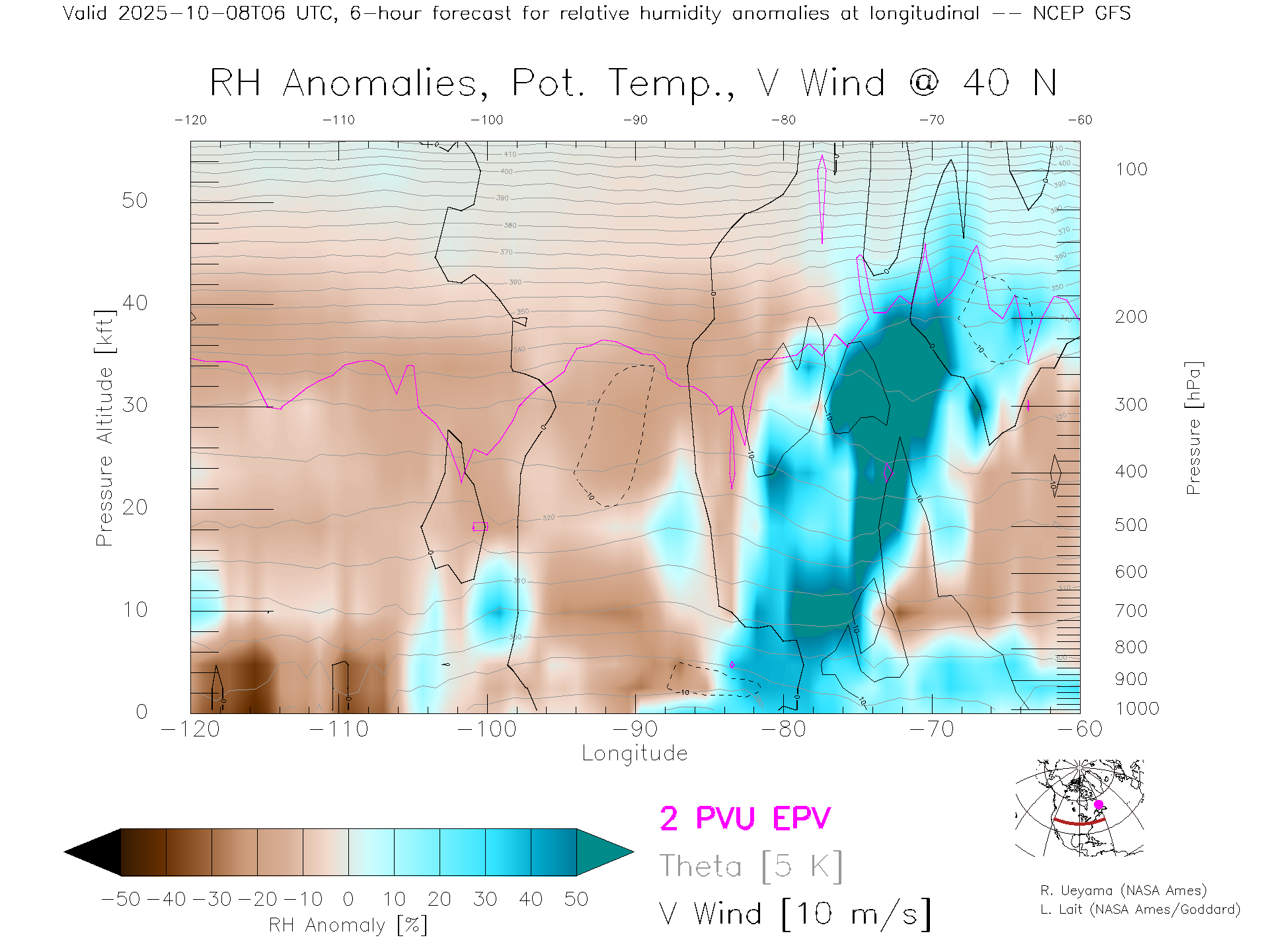 NCEP GFS Forecast Rel. Hum. X-Section (40 N)