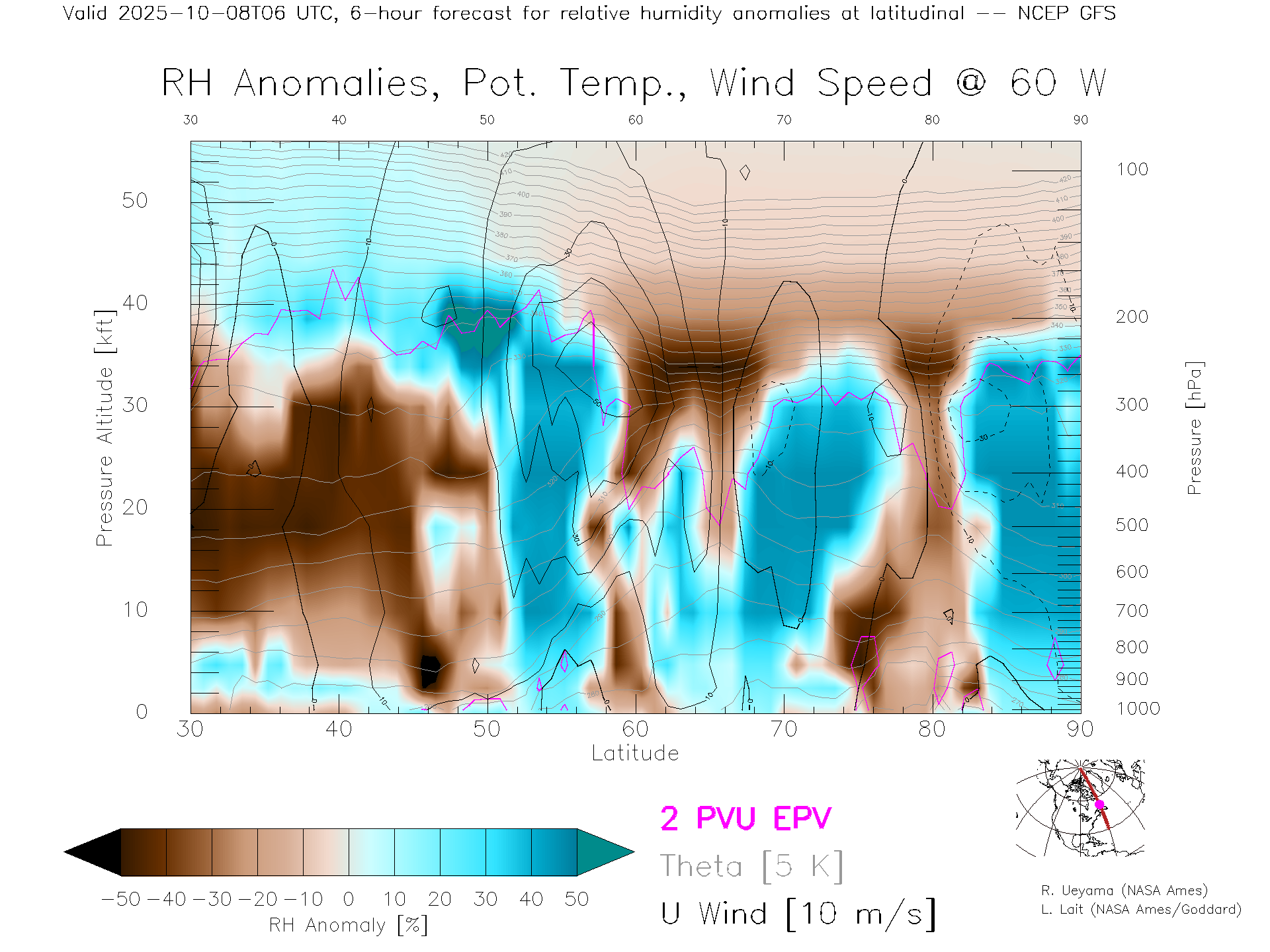 NCEP GFS Forecast Rel. Hum. X-Section (60 W)