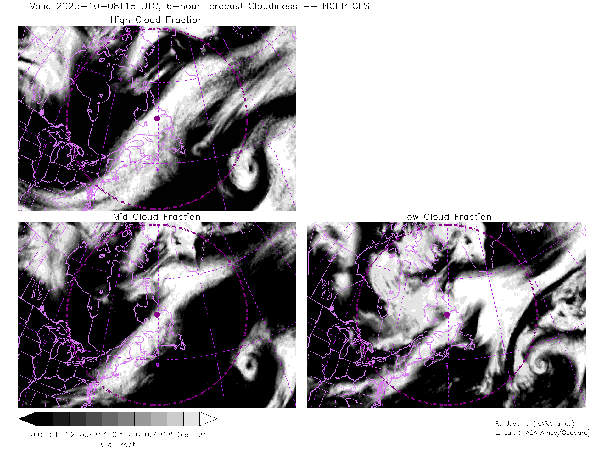 NCEP GFS Forecast Cloud Fraction (High, Mid, Low)