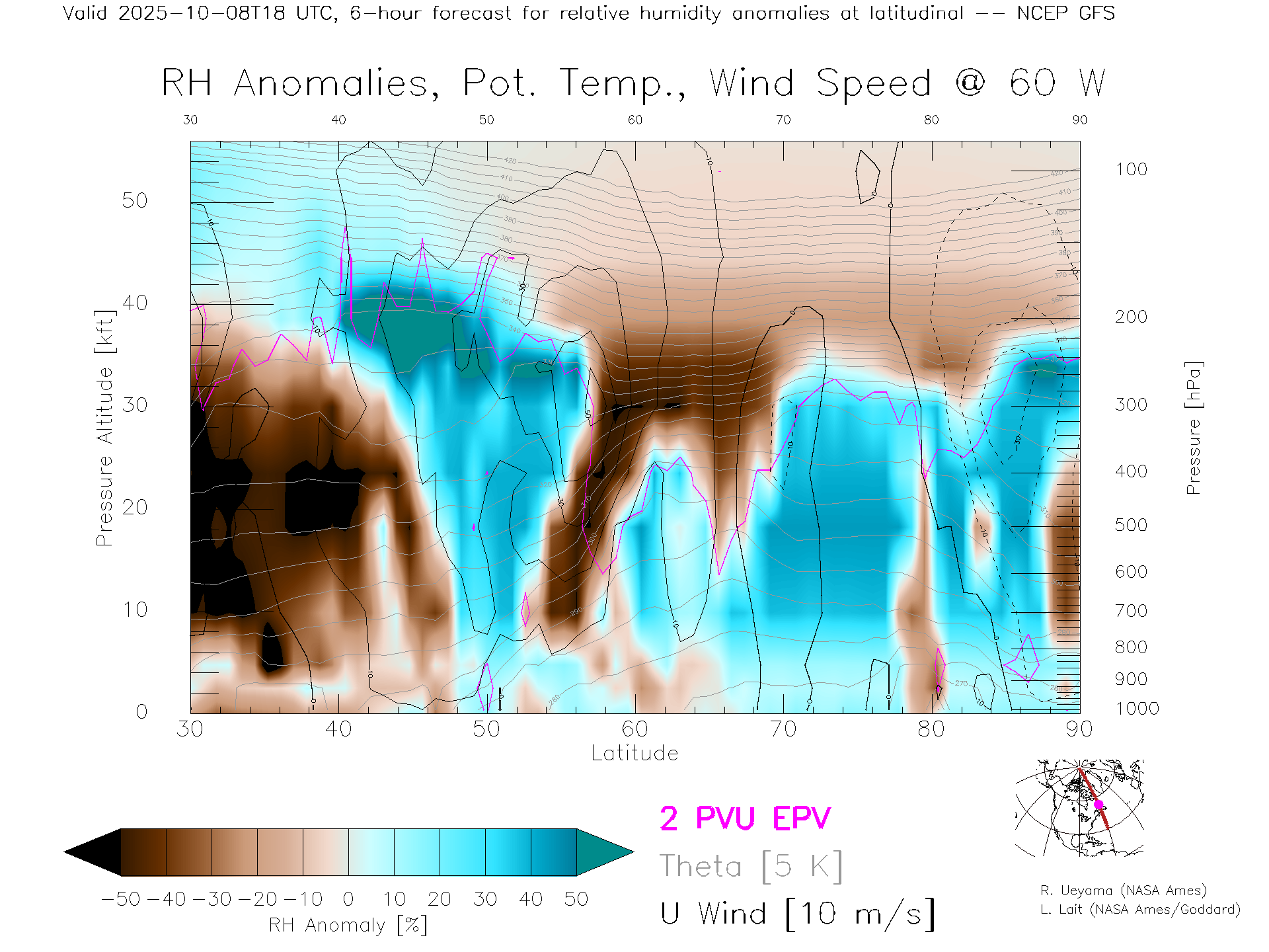 NCEP GFS Forecast Rel. Hum. X-Section (60 W)
