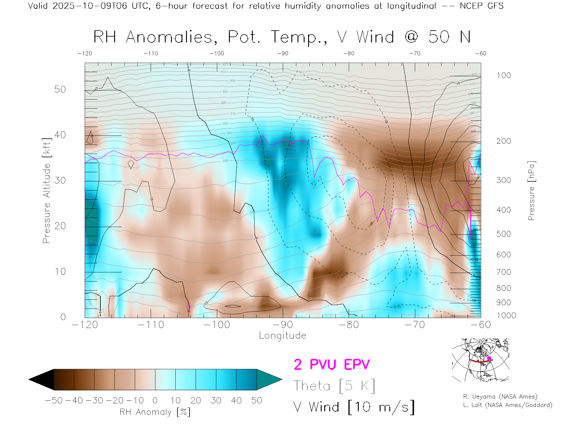 NCEP GFS Forecast Rel. Hum. X-Section (50 N)
