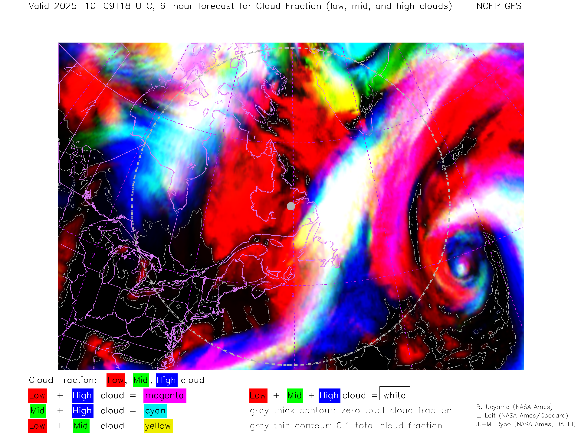 NCEP GFS Forecast Low-, Mid- and High-level Cloud Fraction