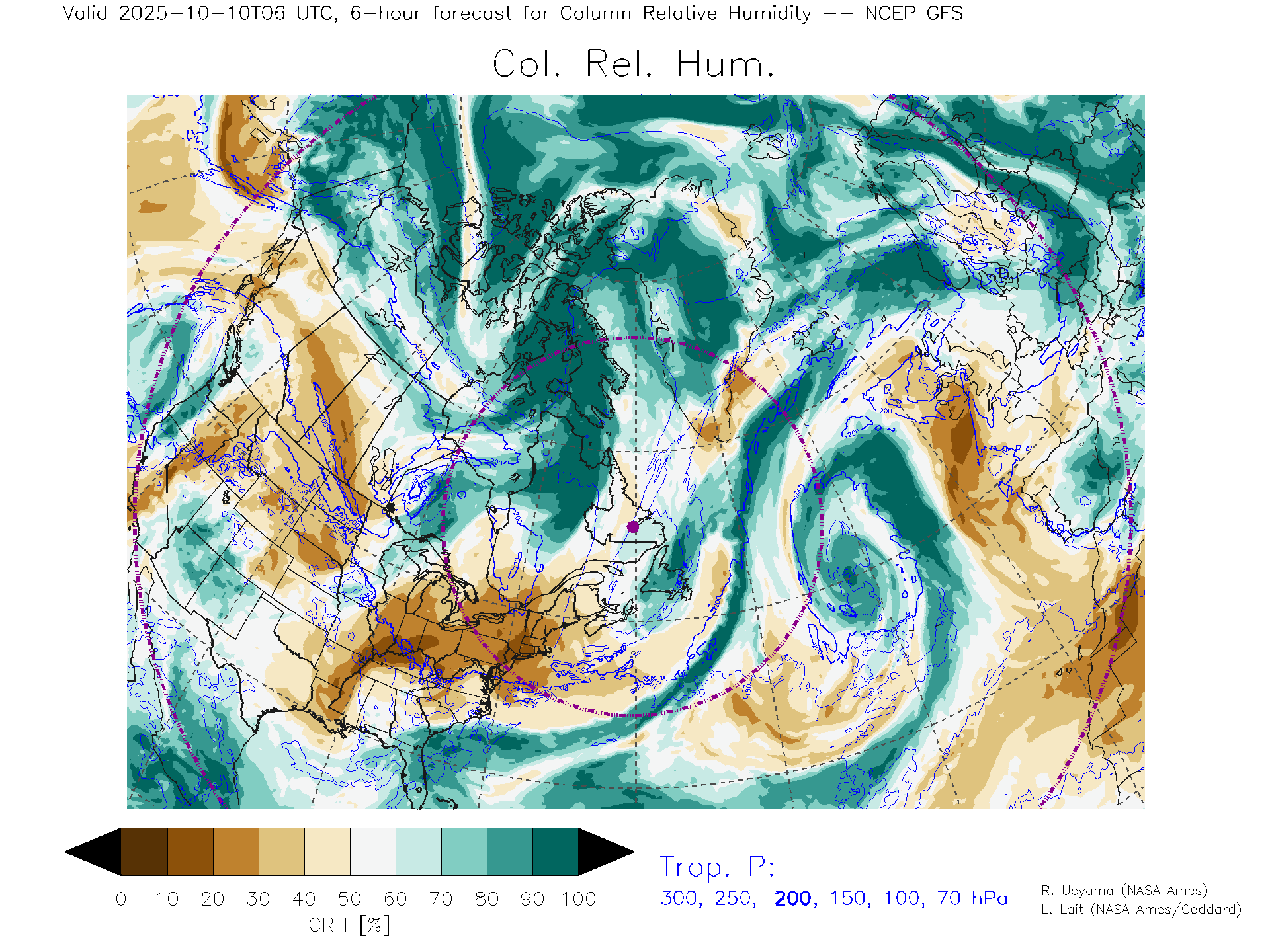 NCEP GFS Forecast Column Rel. Humidity
